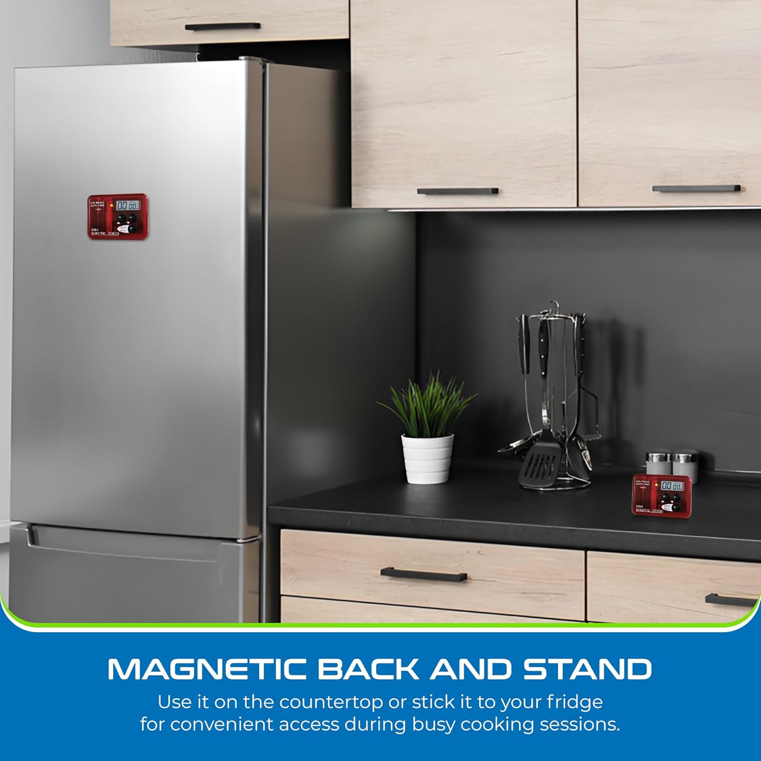 • Magnetic Back and Stand: Use it on the countertop or stick it to your fridge for convenient access during busy cooking sessions.