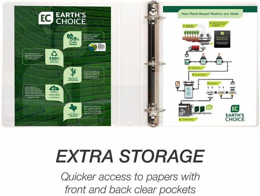 - Sustainable Solution: Our binder is made from plant-based materials, including a polypropylene cover derived from 25% Brazilian sugarcane and 100% recycled fiber boards. Brazilian sugarcane is chosen for its renewable nature and minimal impact on food crops, while actively capturing CO2 from the atmosphere