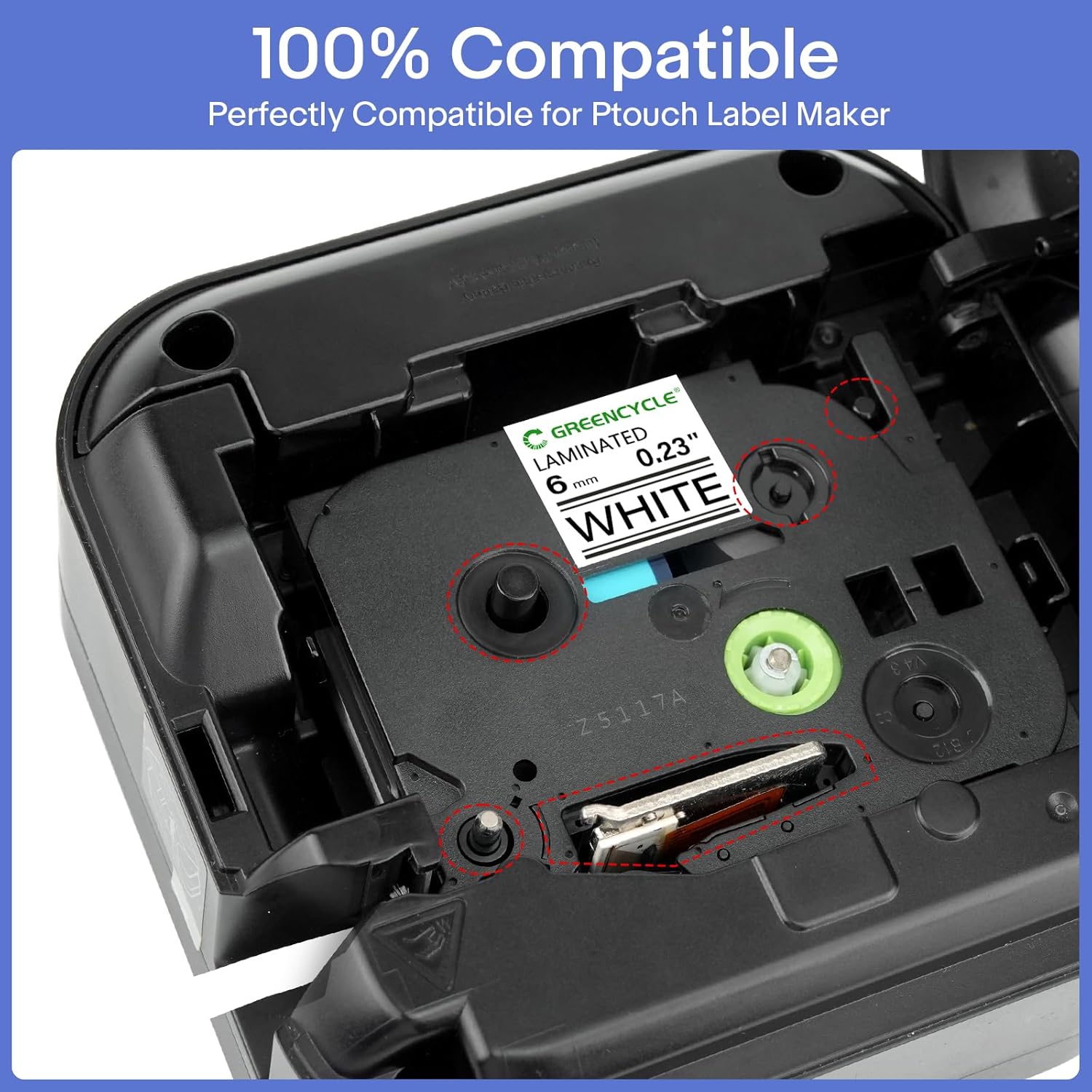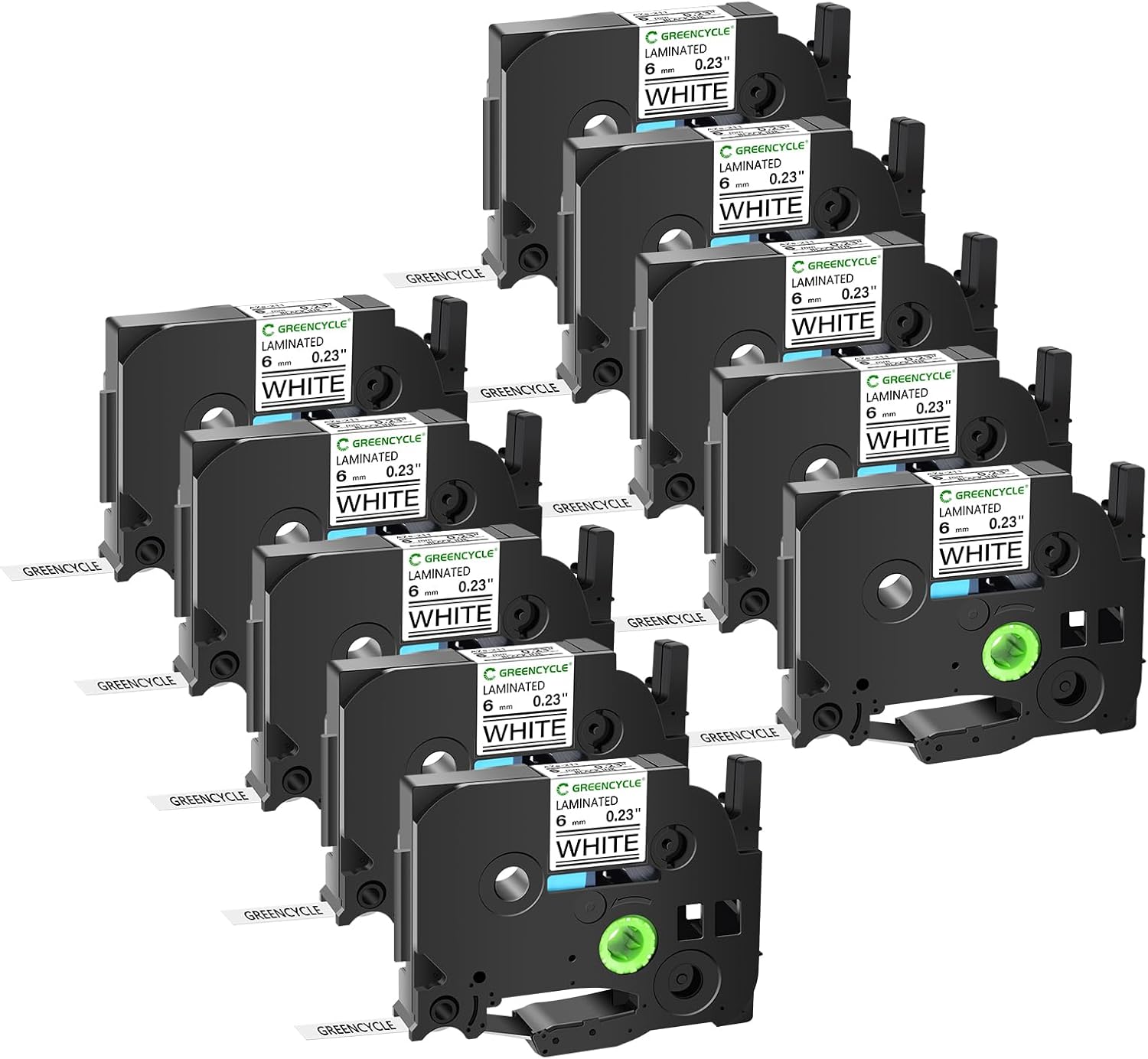 GREENCYCLE 10-Pack Compatible for 1/4" 0.23" 6mm Black on White TZe-211 AZE211 TZ-211 TZ211 Standard Laminated Label Tape for Ptouch PT-D210 PTD400AD PT1230 PTH110 PT Cube Labeler