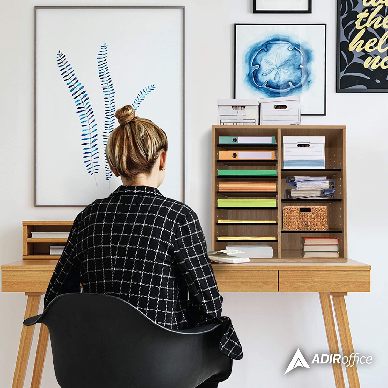 AdirOffice Wooden Adjustable Literature Organizer, 16 Compartment Office Mailbox, or Classroom Literature Organizer, Medium Oak