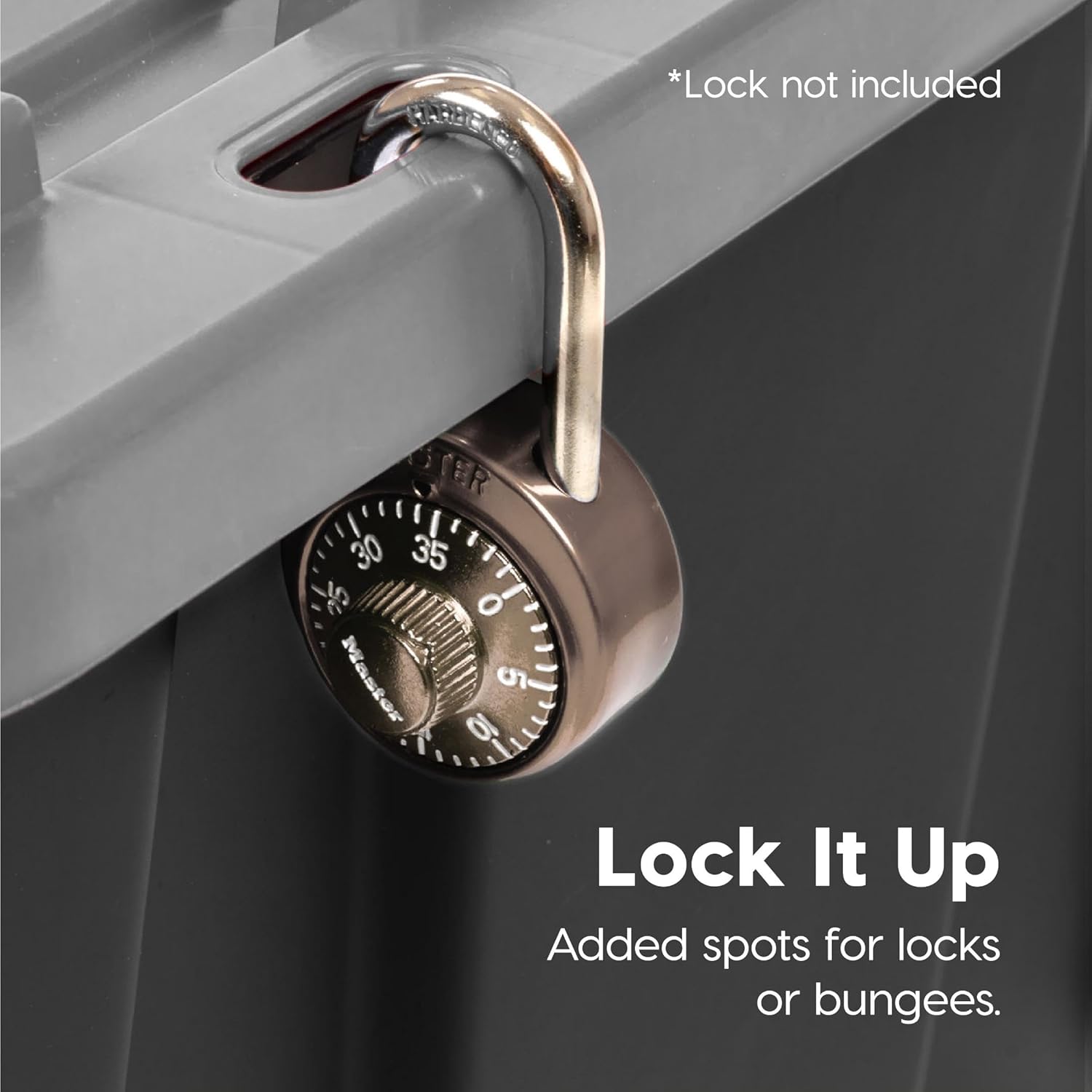 - SNAP-ON LOCKABLE LID: The tight fitting lid ensures a secure fit while also being lockable (lock not included). Ideal for storing all sorts of items like documents, food, clothes, camping, and hunting gear, etc.