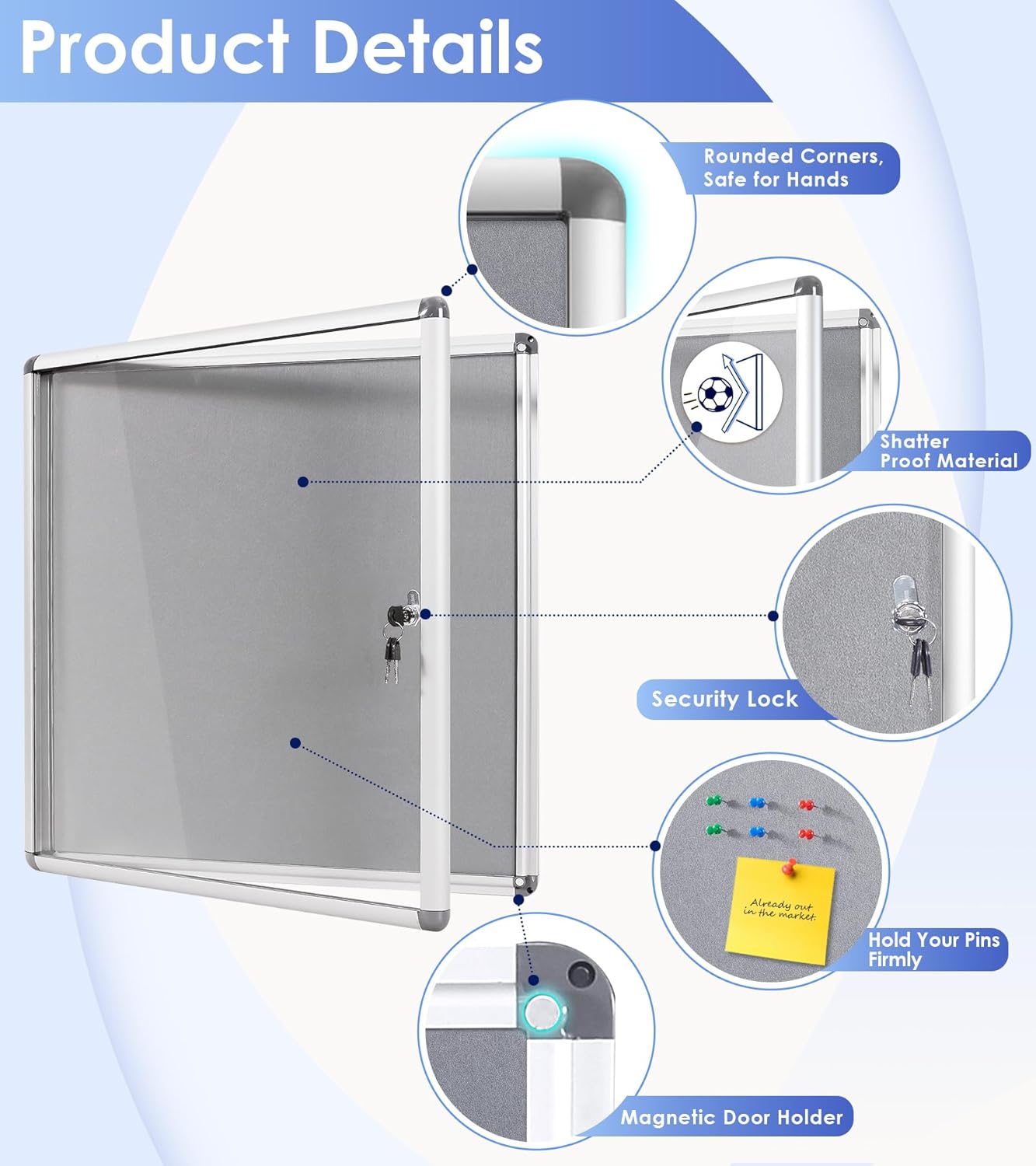 - Secure and Protected Display —Lockable acrylic doors and key mechanisms ensure that important information are kept safe from the elements, theft, or tampering.