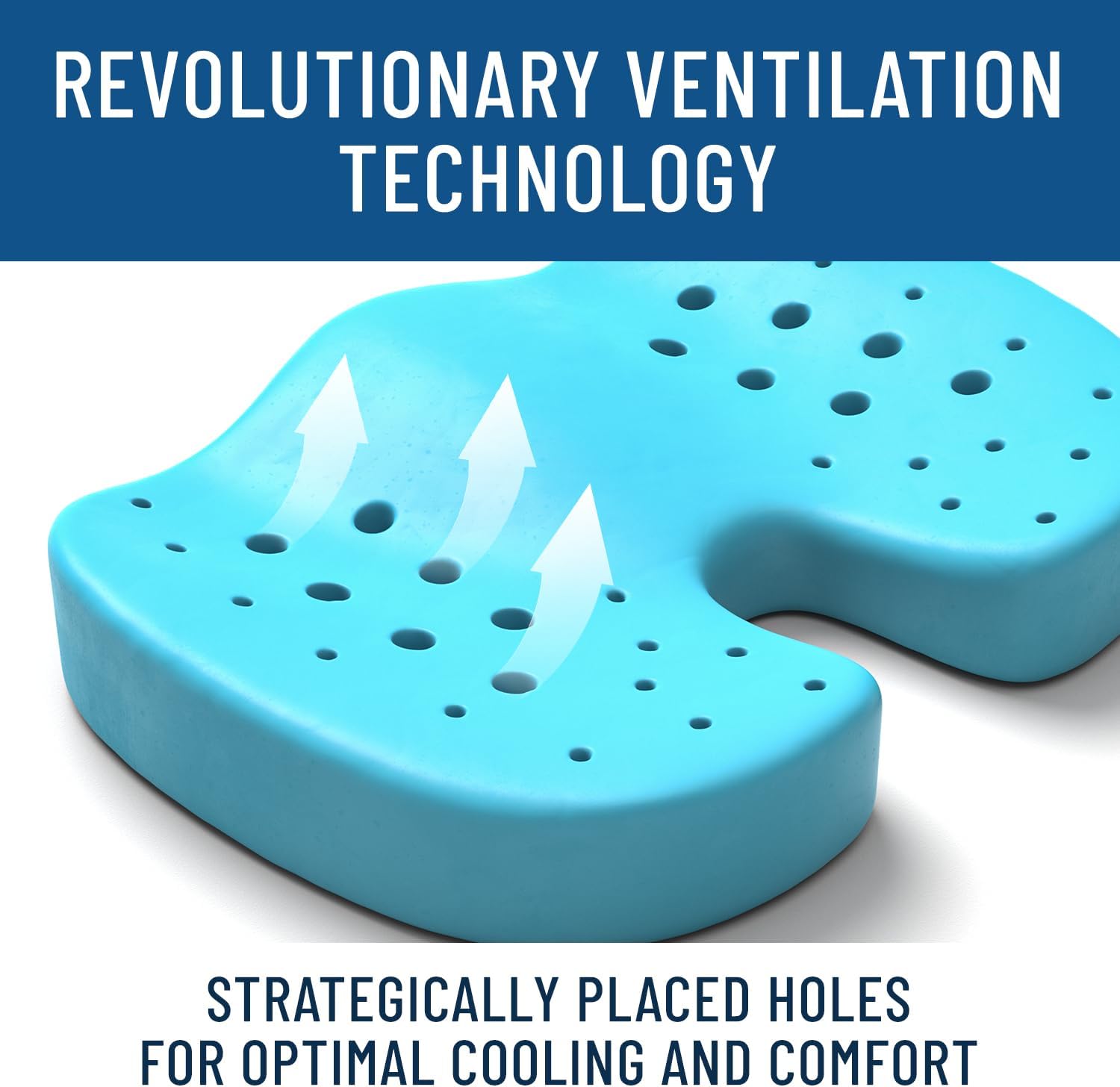 Everlasting Comfort Doctor Recommended Memory Foam Seat Cushion for Office Chairs & Car - Ergonomic Office Desk Accessories - Cushions for Tailbone Pain Relief, Sciatica (Black Ventilated, Large)