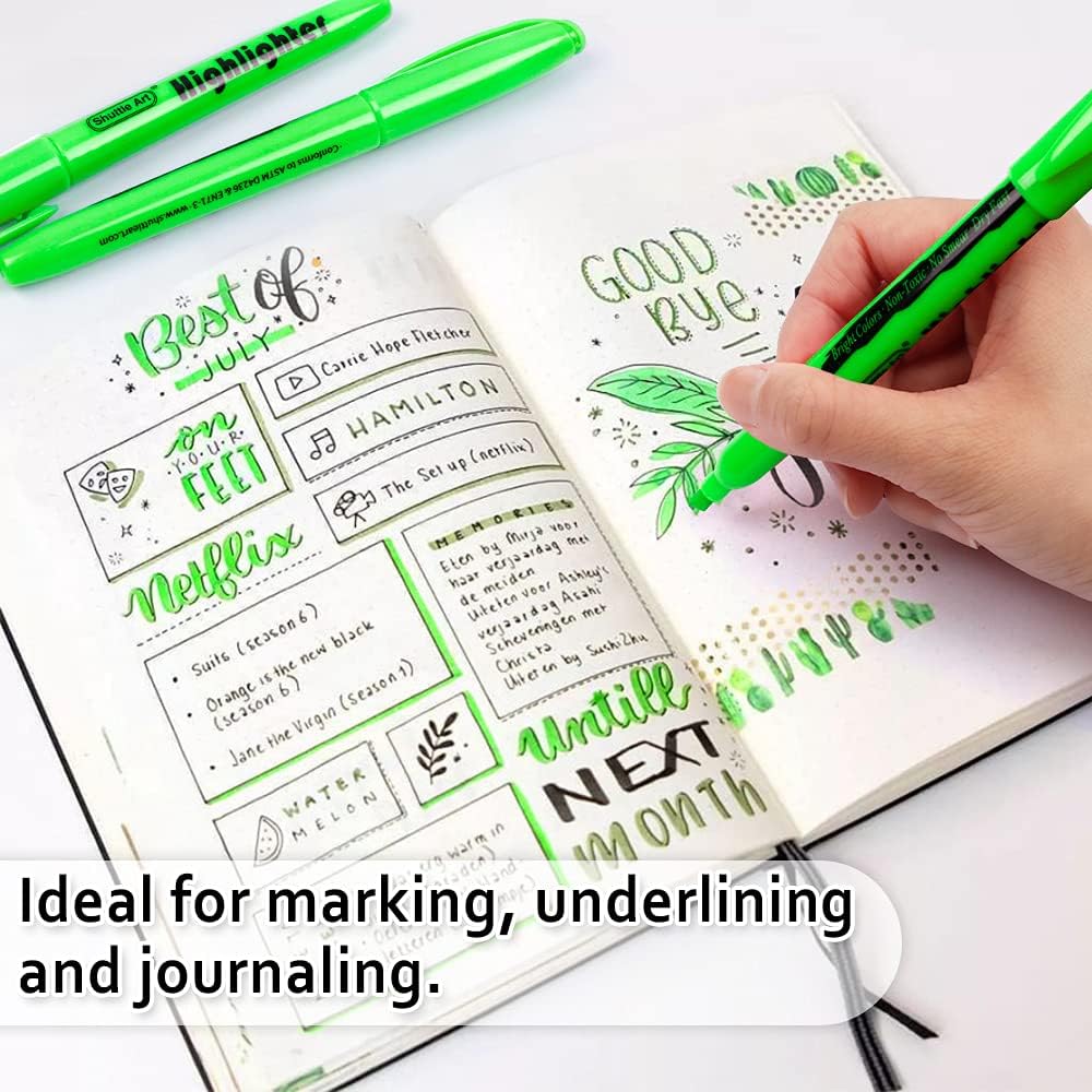 Shuttle Art Highlighters, 30 Pack Green Highlighters Bright Colors, Chisel Tip Dry-Quickly Non-Toxic Highlighter Markers for Adults Kids Highlighting in Home School Office