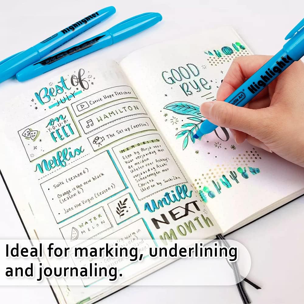 Shuttle Art Highlighters, 30 Pack Blue Highlighters Bright Colors, Chisel Tip Dry-Quickly Non-Toxic Highlighter markers for Adults Kids Highlighting in the Home School Office