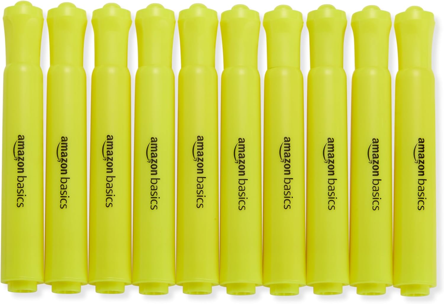 Amazon Basics Highlighters 12 Pack, Yellow Colors, Chisel Tip,Bible Highlighter,Office and School Supplies
