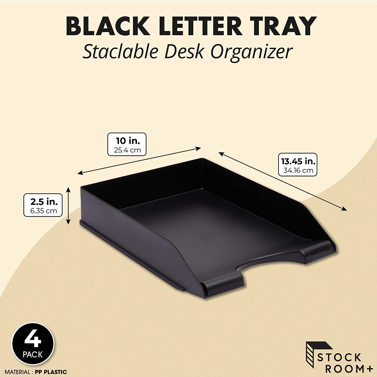 Stockroom Plus Letter Tray - Stackable Desk Organizer Trays - Desktop File Organizer - Mail & Document Storage - Pack of 4, Black, 10 x 13.5 x 2.5 in