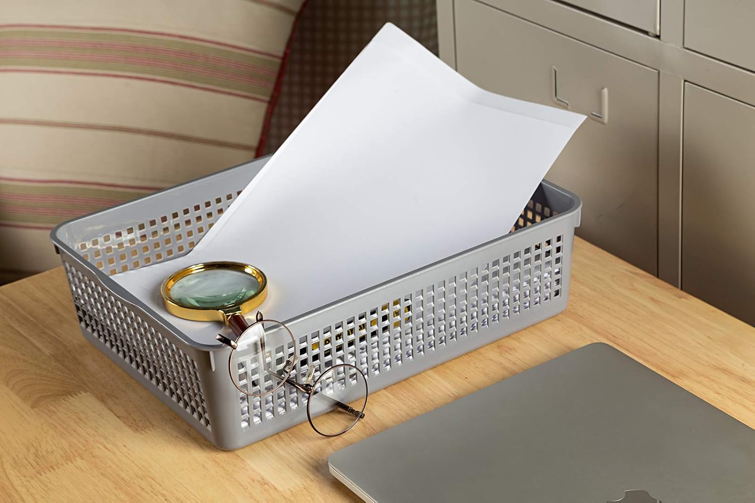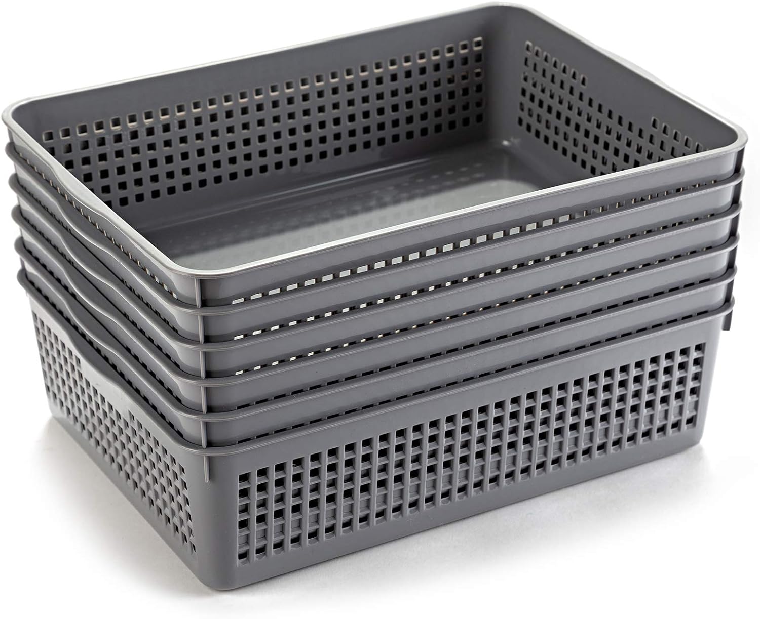 A4 Size Plastic Paper Storage Trays,Desktop File Organizer Baskets,6-Packs (Grey)
