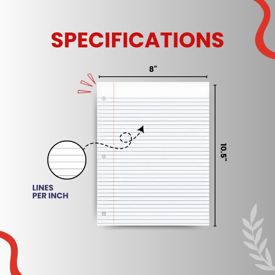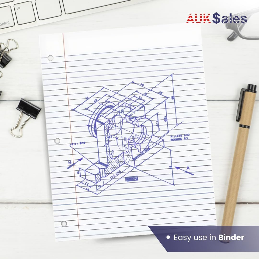 • This ruled notebook paper features a three-hole punch, making it easy to add to a binder for school, notebook binder, or 3 ring notebook. Ideal for notebooks for college, notebooks for school college ruled, and loose leaf binder use.