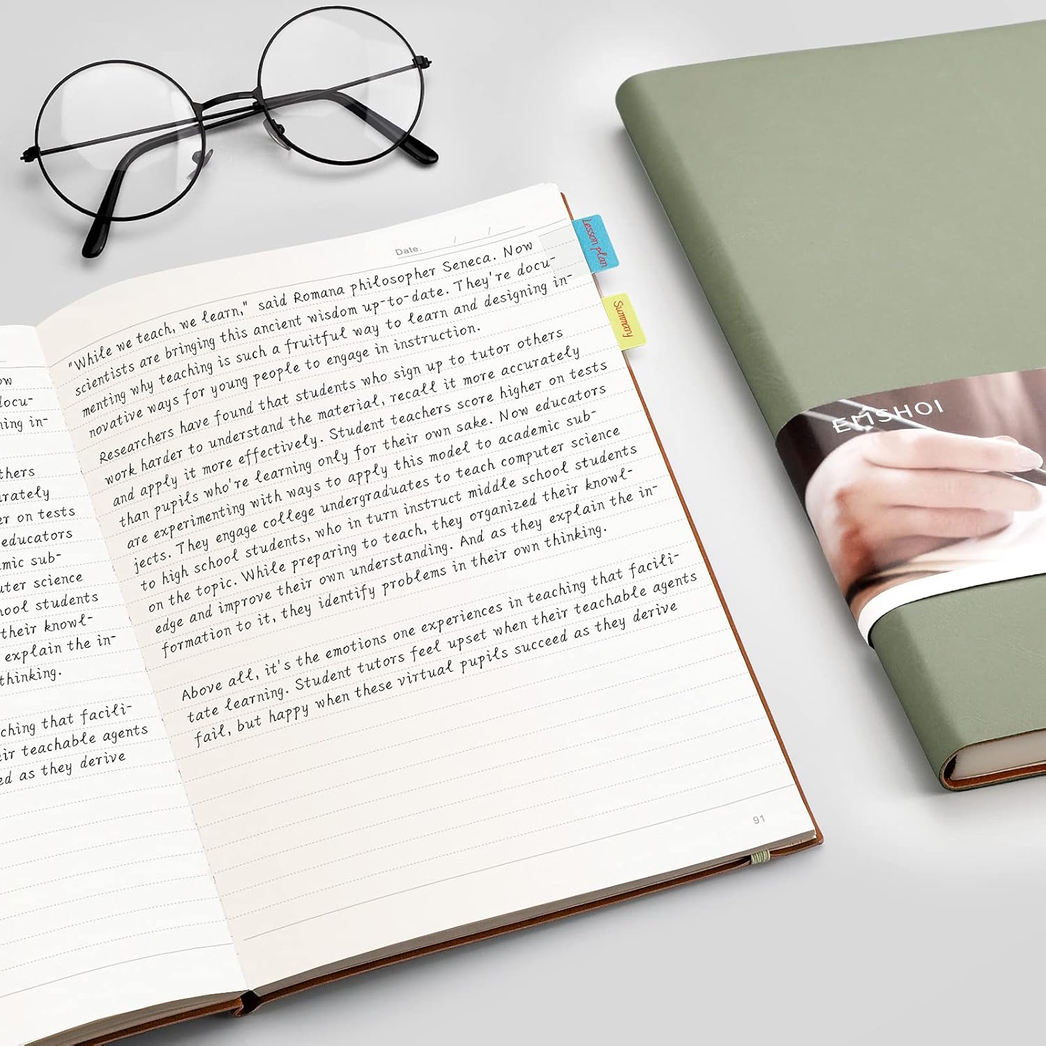 EMSHOI College Ruled Composition Notebook - Large B5 Notebook Lined Journal Leather with Free Sticky Notes, 204 Numbered Pages,100gsm Thick Lined Paper, Softcover, 7.5"x10"-Green