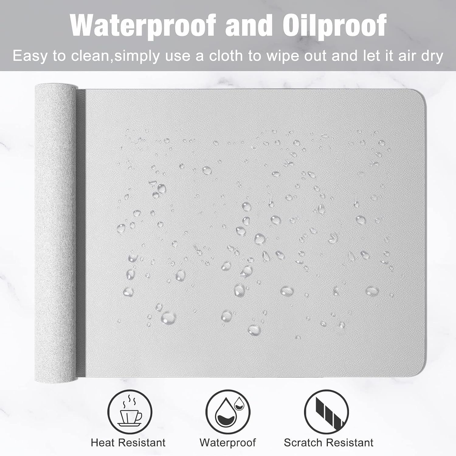 • Non-slip Base & Waterproof Surface: Suede material used for the back side for slip resistance. Synthetic leather used for the upper use side, waterproof, oilproof and anti-fray. Deskpad is easy to clean with a wipe and features great locking-color effect