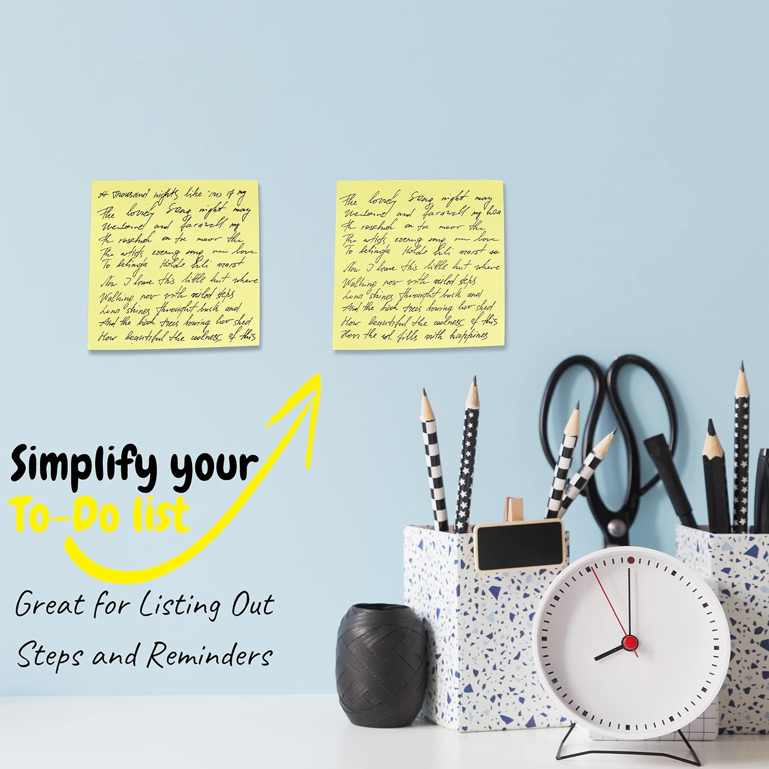 • Yellow sticky notes will make your message more noticeable and are great for leaving reminders and messages.