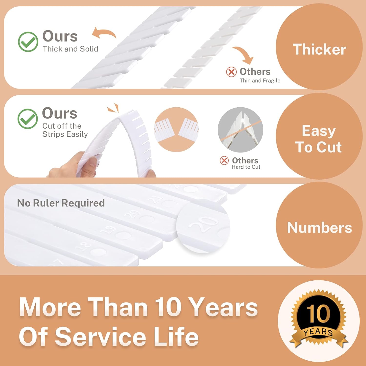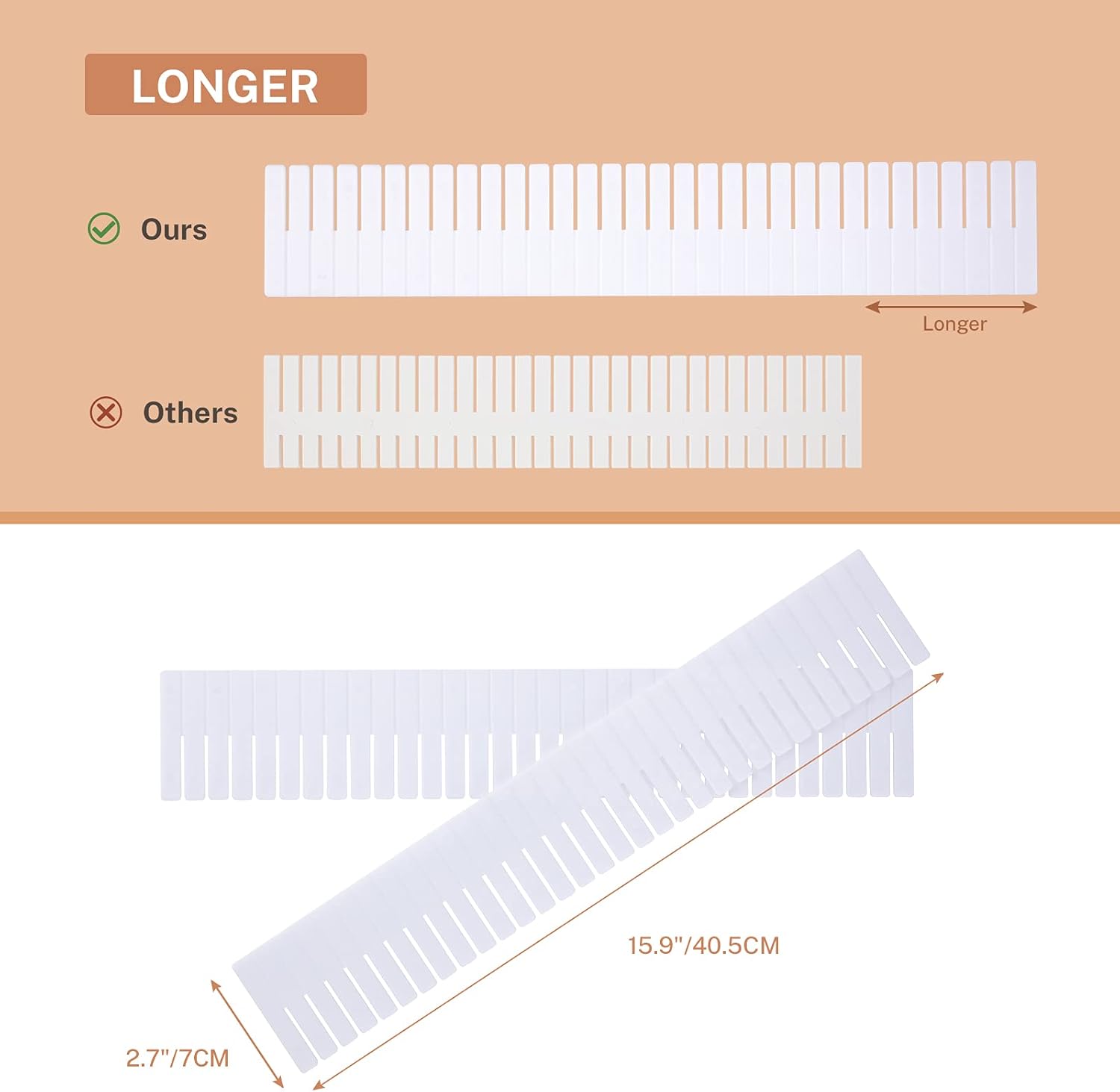 - 15 PCS LONG DRAWER DIVIDER: Size of the dividers for drawer is 16 In(L) x 2.7 In(W). Longer design to make it suitable for more type of drawer easier. The numbers on the grid divider provide convenience when you need to cut it.