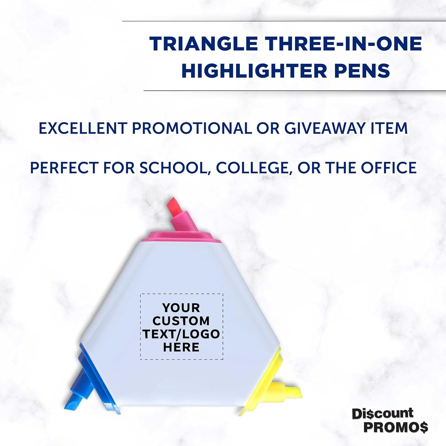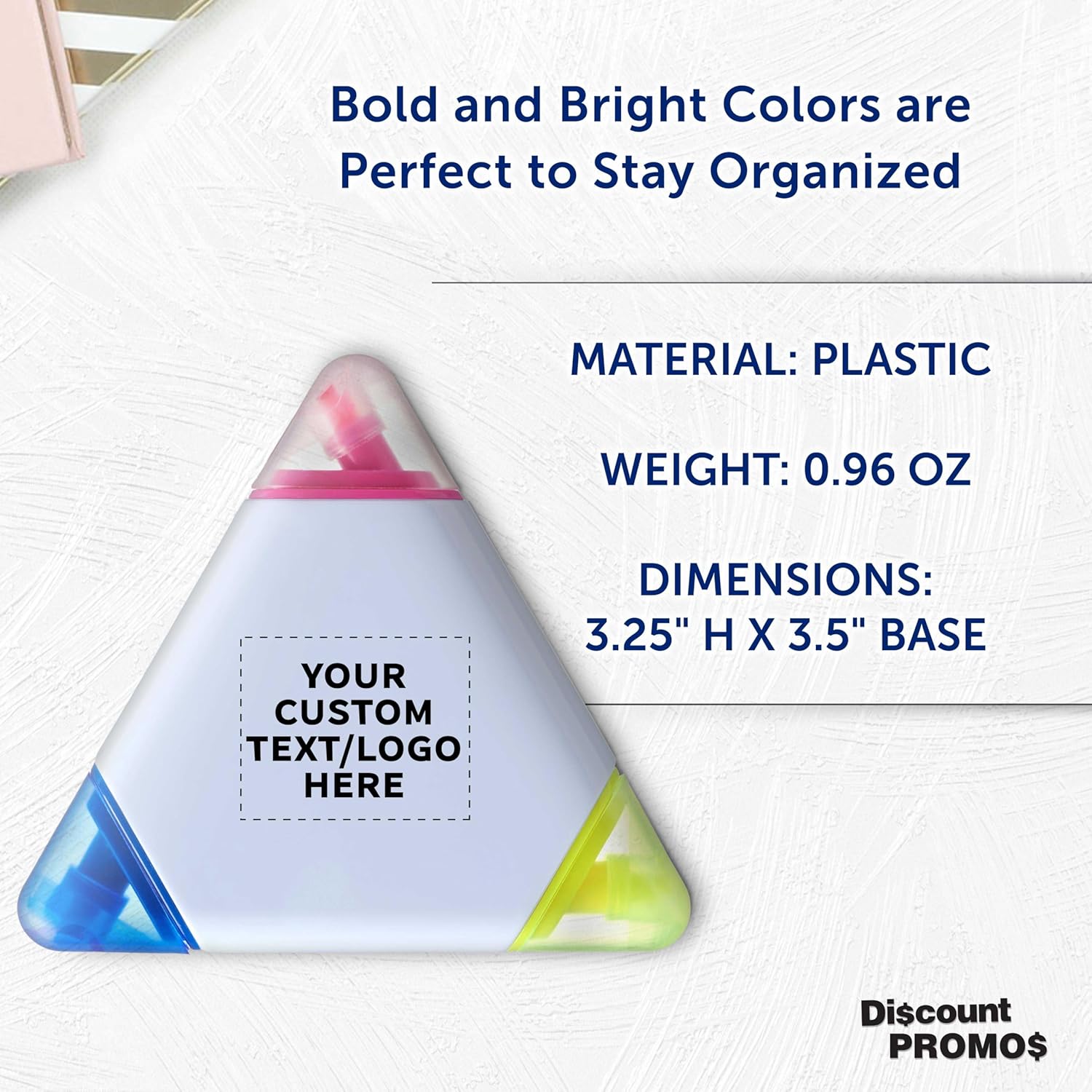 DISCOUNT PROMOS Custom Highlighters Set of 10/50/100, Personalized Bulk Pack Durable Chisel Tip Textbook Highlighters Handy and Easy to Store - Triangle