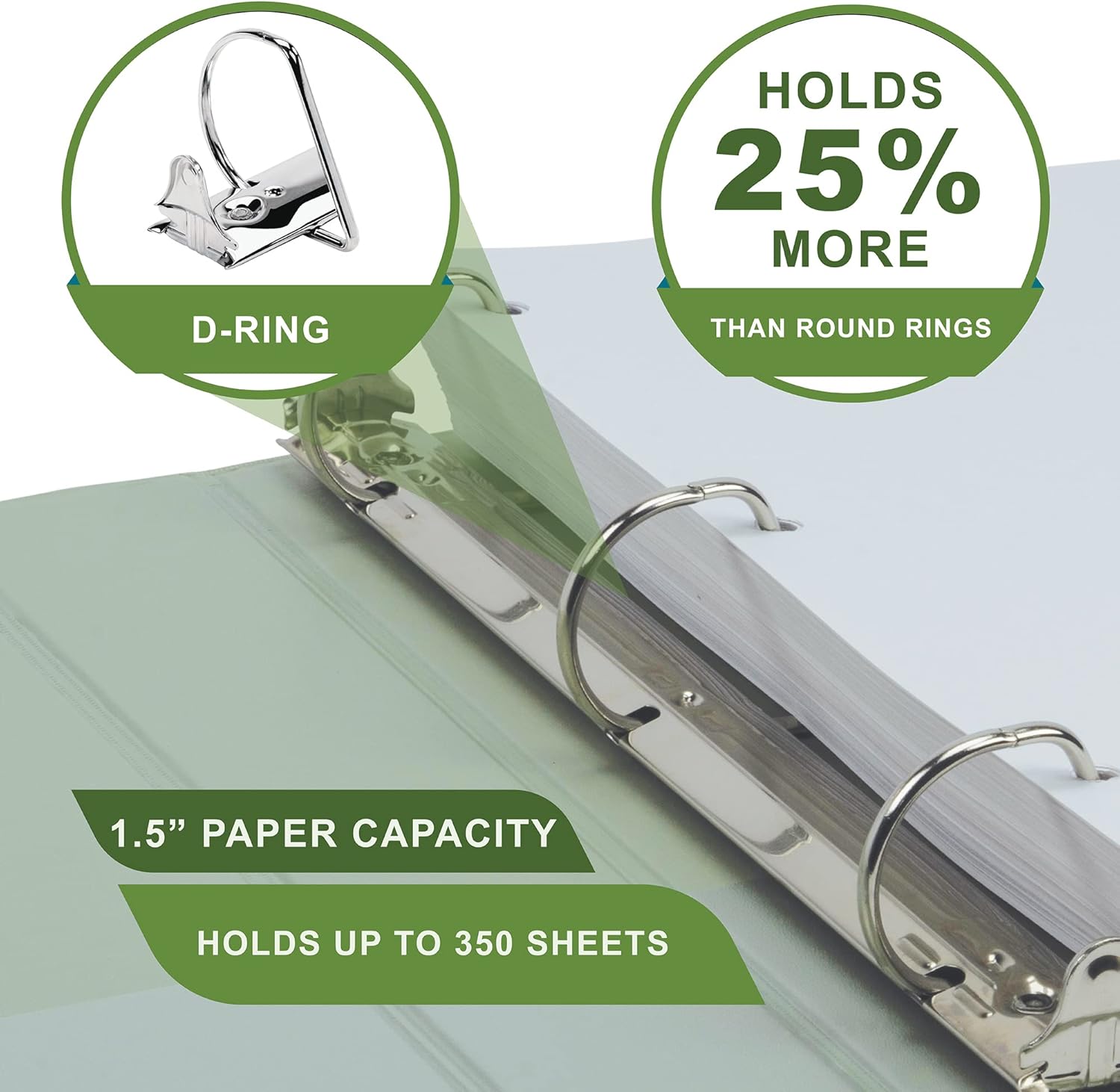 Samsill Plant-Based 1.5 Inch Durable D-Ring, Made in USA, View Binder, Eco-Friendly, USDA Certified Biobased, 2 Pack, Sage Green