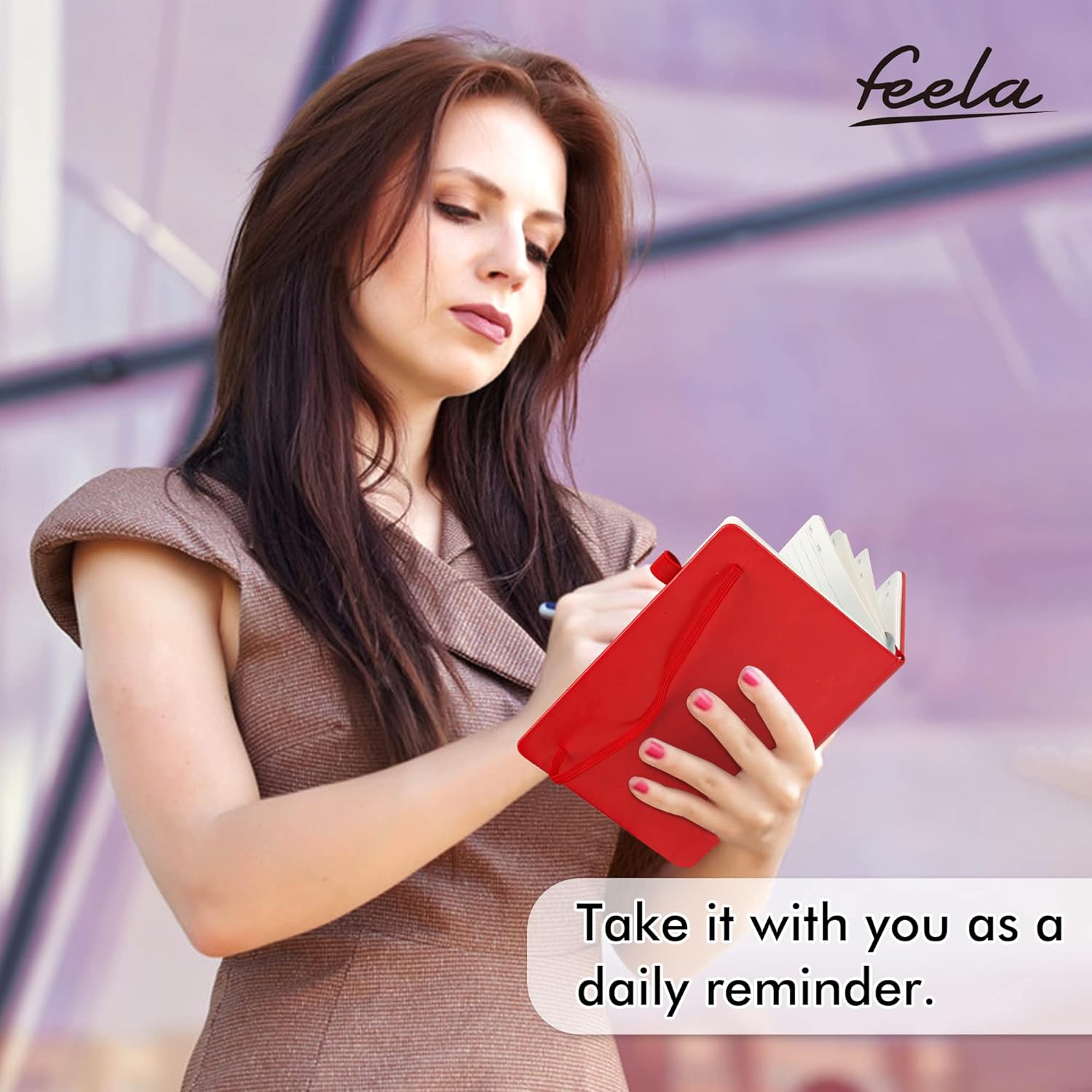 feela 3 Pack Notebooks Journals Bulk with 3 Black Pens, A5 Hardcover Notebook Classic Ruled Lined Journal Set with Pen Holder for Work Business Journaling Note Taking, 120 GSM, 5.1”x8.3”, Red