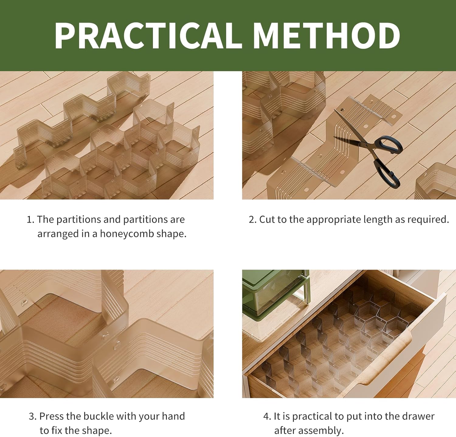 - ❤[HONEYCOMB DRAWER DIVIDER] - The unique honeycomb drawer organizer is a perfect storage divider for your drawers or cabinets in home, dorm room or office, the drawer separator is novel and stable, and can be used as drawer decoration to improve the quality of life.
