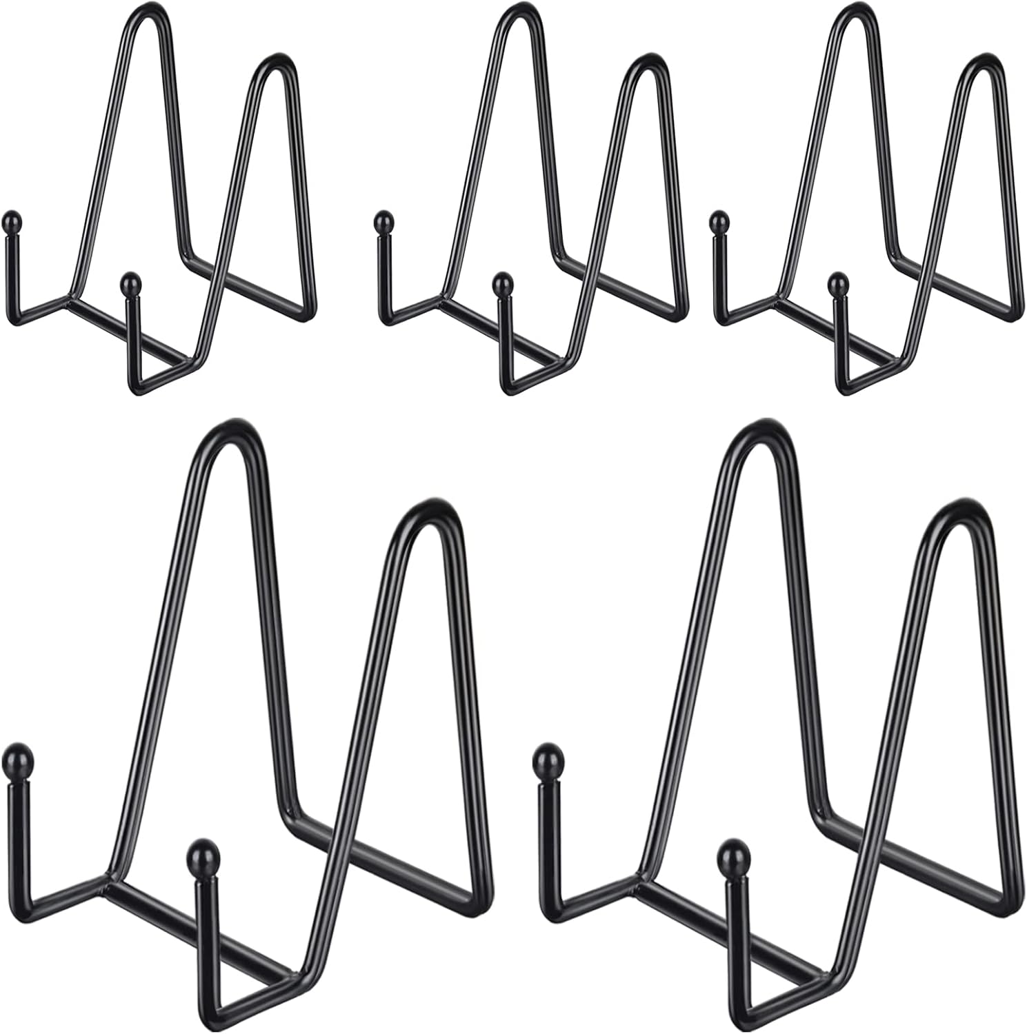 - 5 Pack Stands: The 5 pack plate holder set allows you to meet different needs with one purchase, and it is more cost-effective. You can use the display stand to place your photos, artwork, open books, mobile phones, tablets…and so on