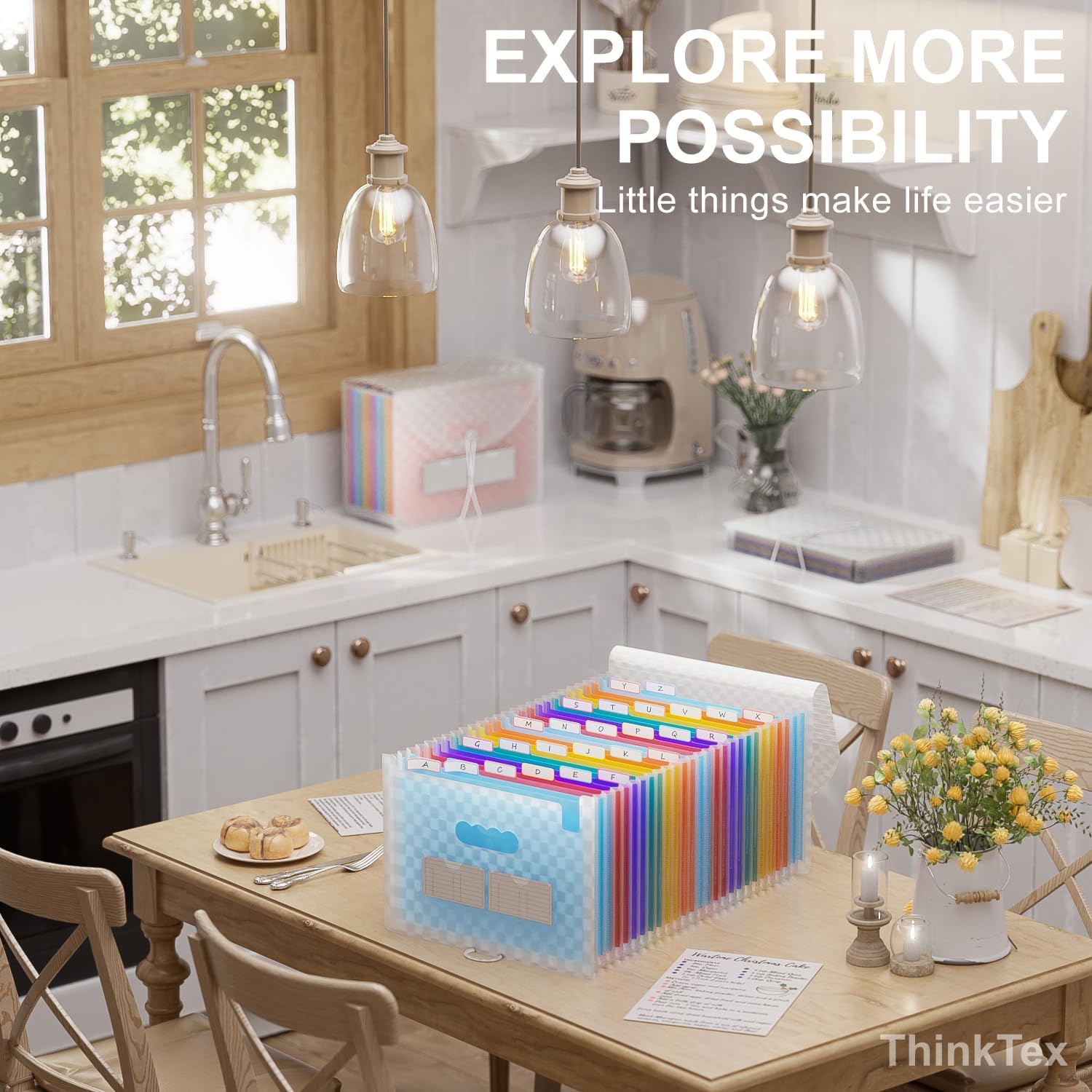 ThinkTex Accordion File Organizer, 26 Pockets Expanding File Folders, Monthly Bill Receipt Documents Organizer, A-Z Colorful Tabs, Letter/A4 Size - Blue