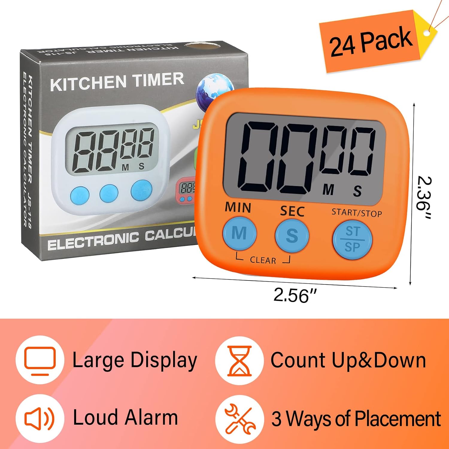 • Digital Timers Set: the package includes 24 pieces digital kitchen timers for cooking in pink and orange colors; Please note that the 1 x AAA battery is not included. In terms of quantity and color, we will meet your needs and replacements in daily uses