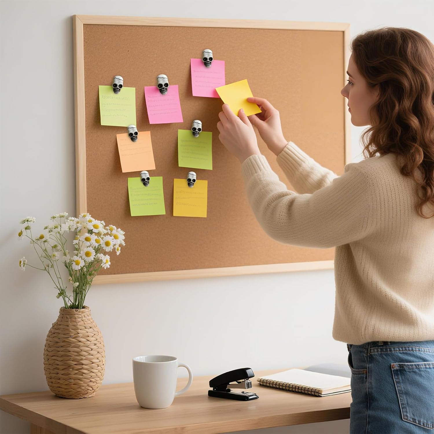 - Function: Made with a sharp steel tip, this skull pin is easy to insert into a wooden board. Hold things firmly in place and not easily bend or fall. Perfect for displaying notifications and reminders at work, home and office. A perfect combination