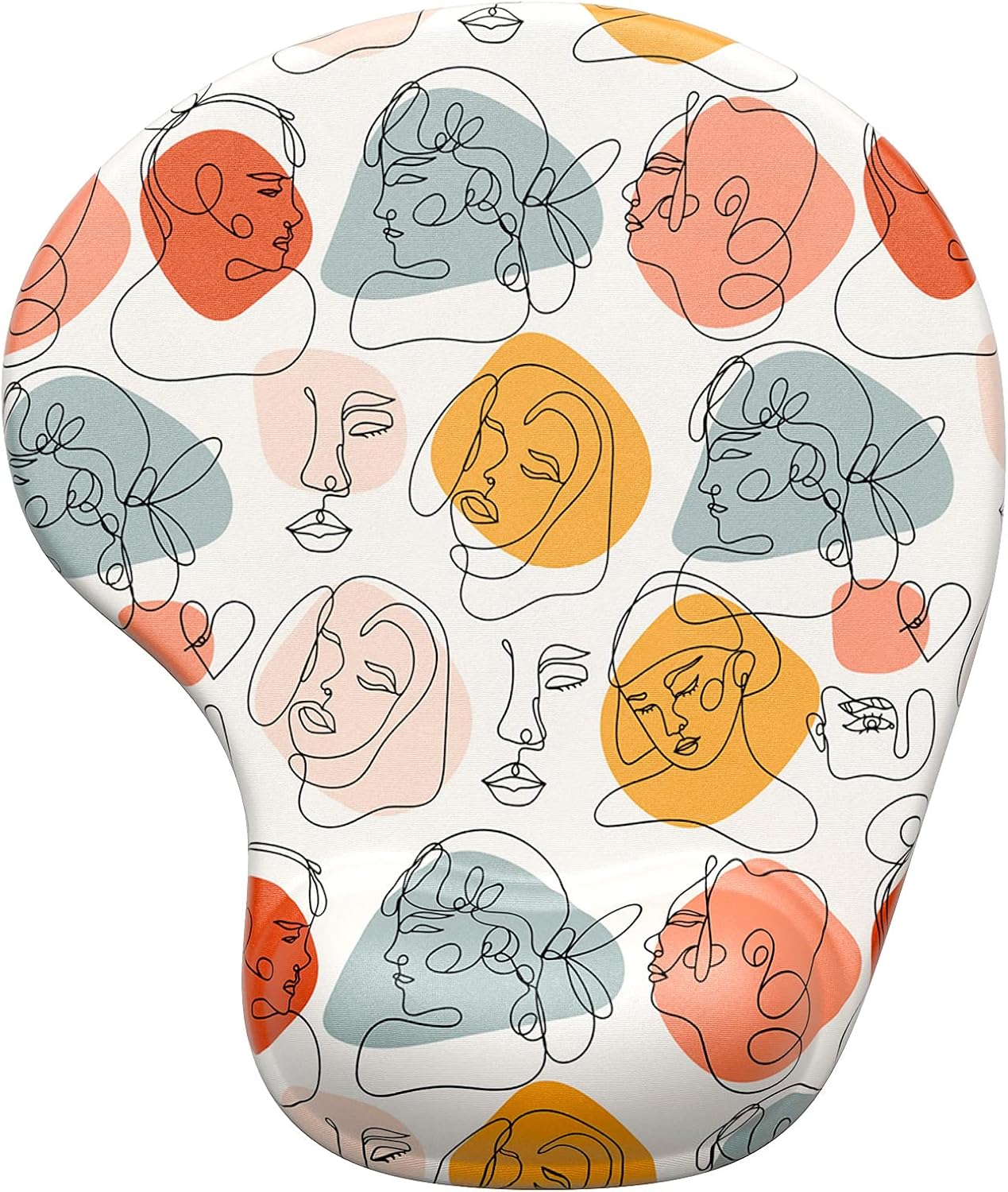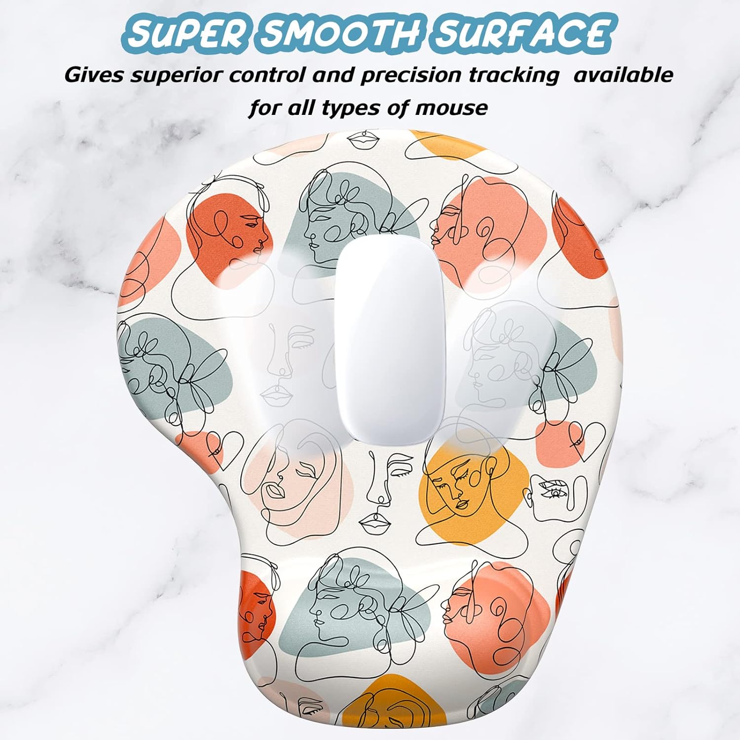 Hsurbtra Ergonomic Mouse Pad with Wrist Rest Support, Gel Mouse Pads with Non-Slip PU Base, Pain Relief Memory Foam Computer Mat, Cute Office Supplies Desk Decro Accessories, Art Face