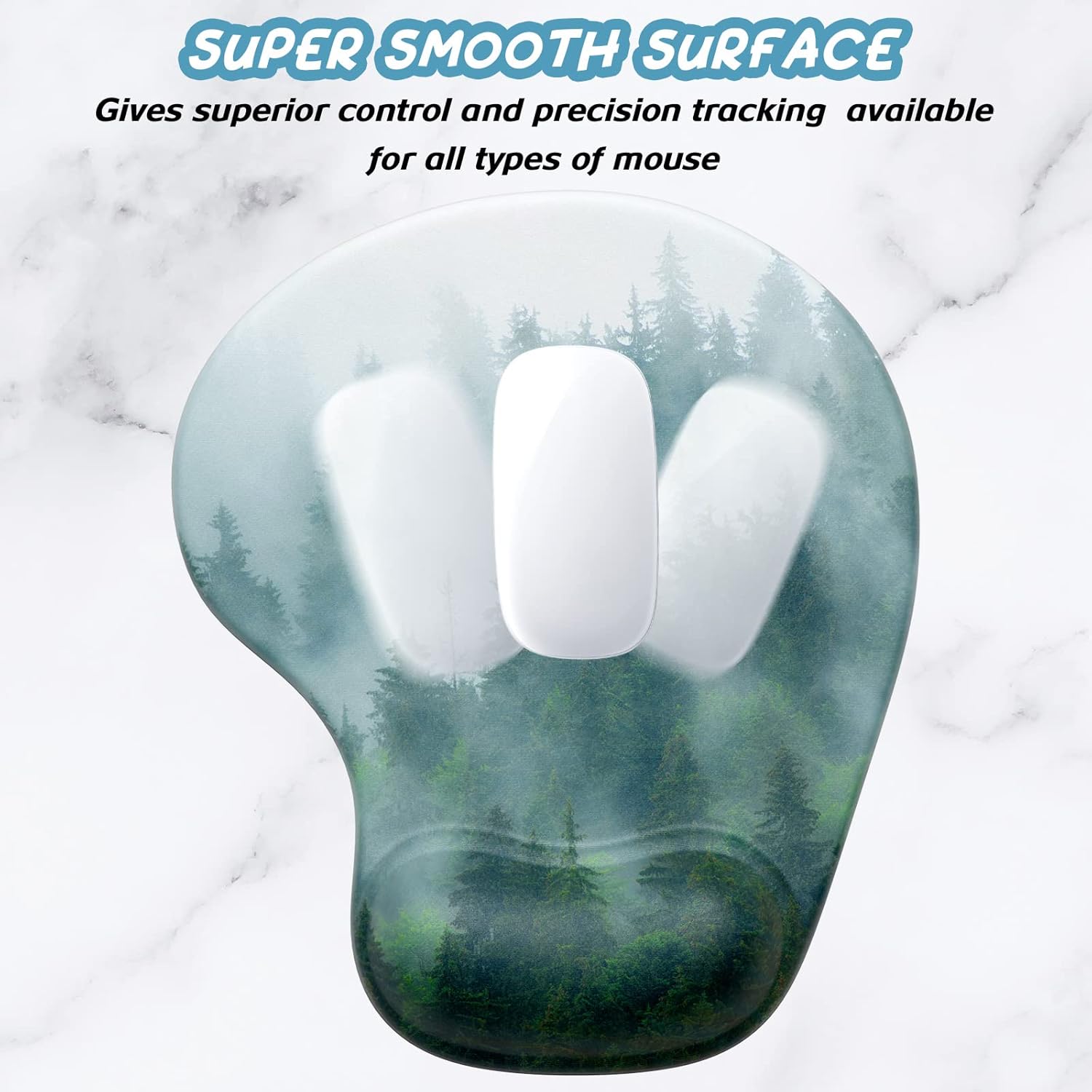 Hsurbtra Ergonomic Mouse Pad with Wrist Rest Support, Gel Mouse Pads with Non-Slip PU Base, Pain Relief Memory Foam Computer Mat, Cute Office Supplies Desk Decro Accessories, Black Forest