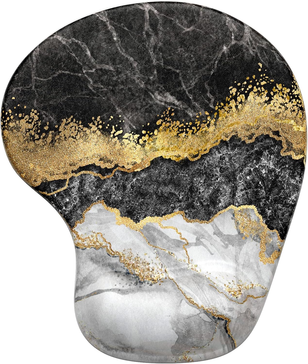 Hsurbtra Ergonomic Mouse Pad with Wrist Rest Support, Gel Mouse Pads with Non-Slip PU Base, Pain Relief Memory Foam Computer Mat, Cute Office Supplies Desk Decro Accessories, Black Marble