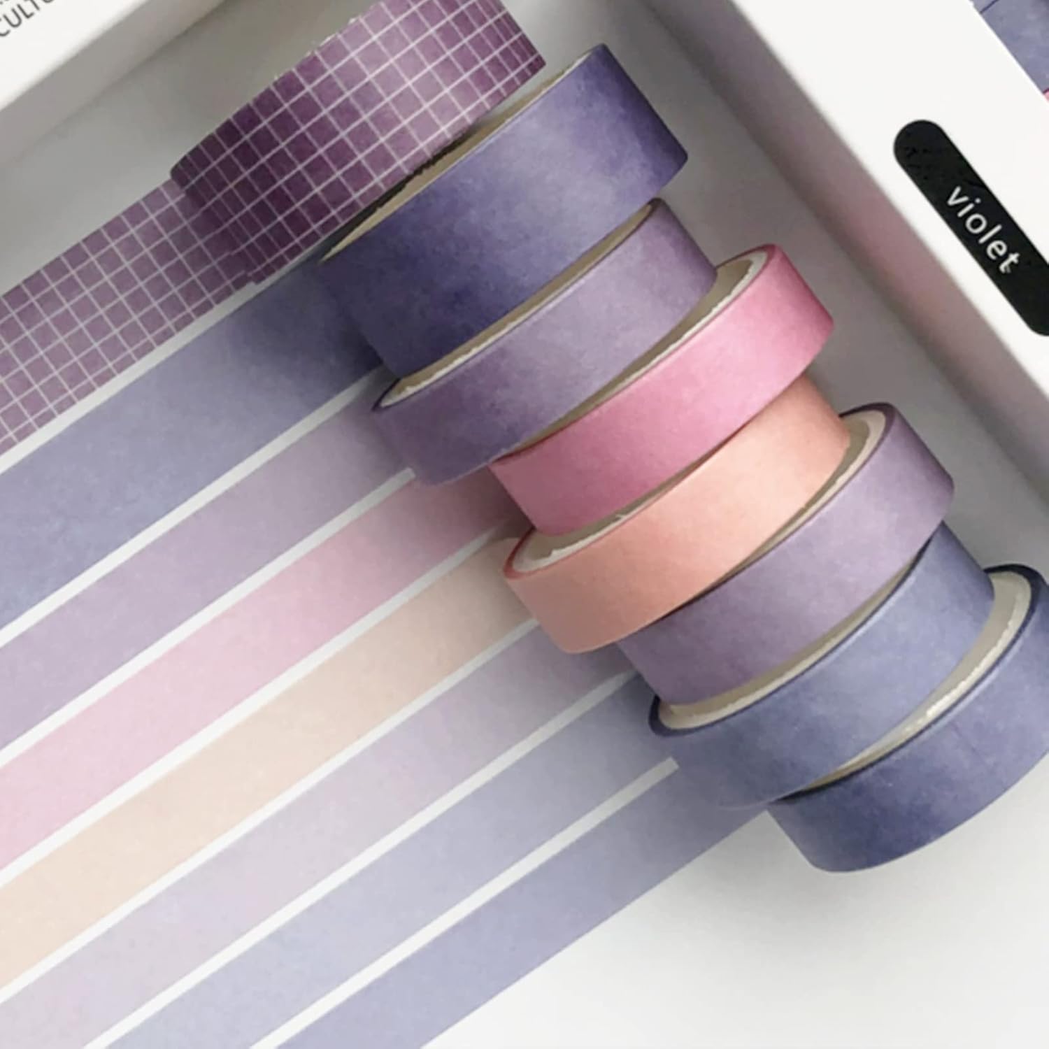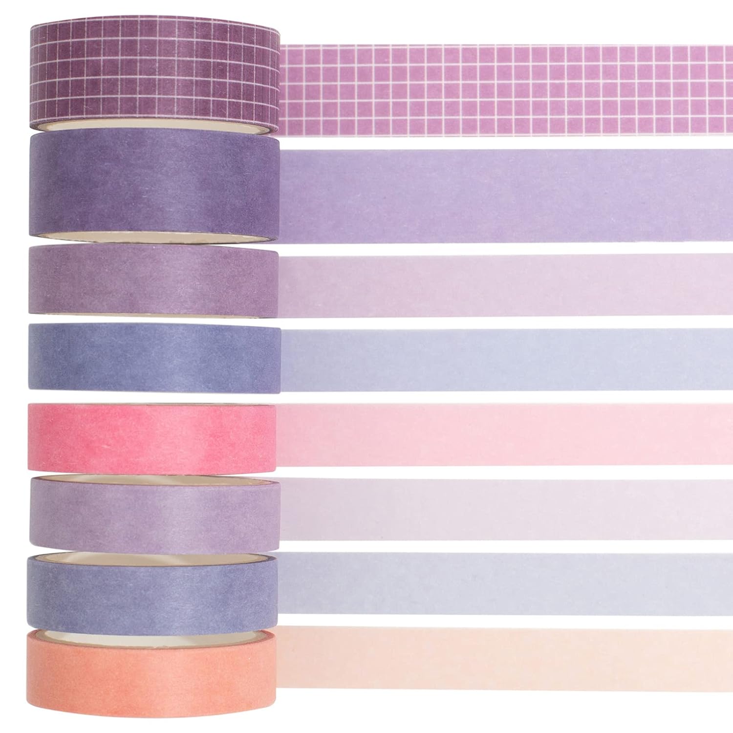 YUBBAEX 8 Rolls Basic Washi Tape Set Solid Color Grid Masking Decorative Tapes for Arts, DIY Crafts, Journals, Planners, Scrapbooking, Wrapping (Violet)