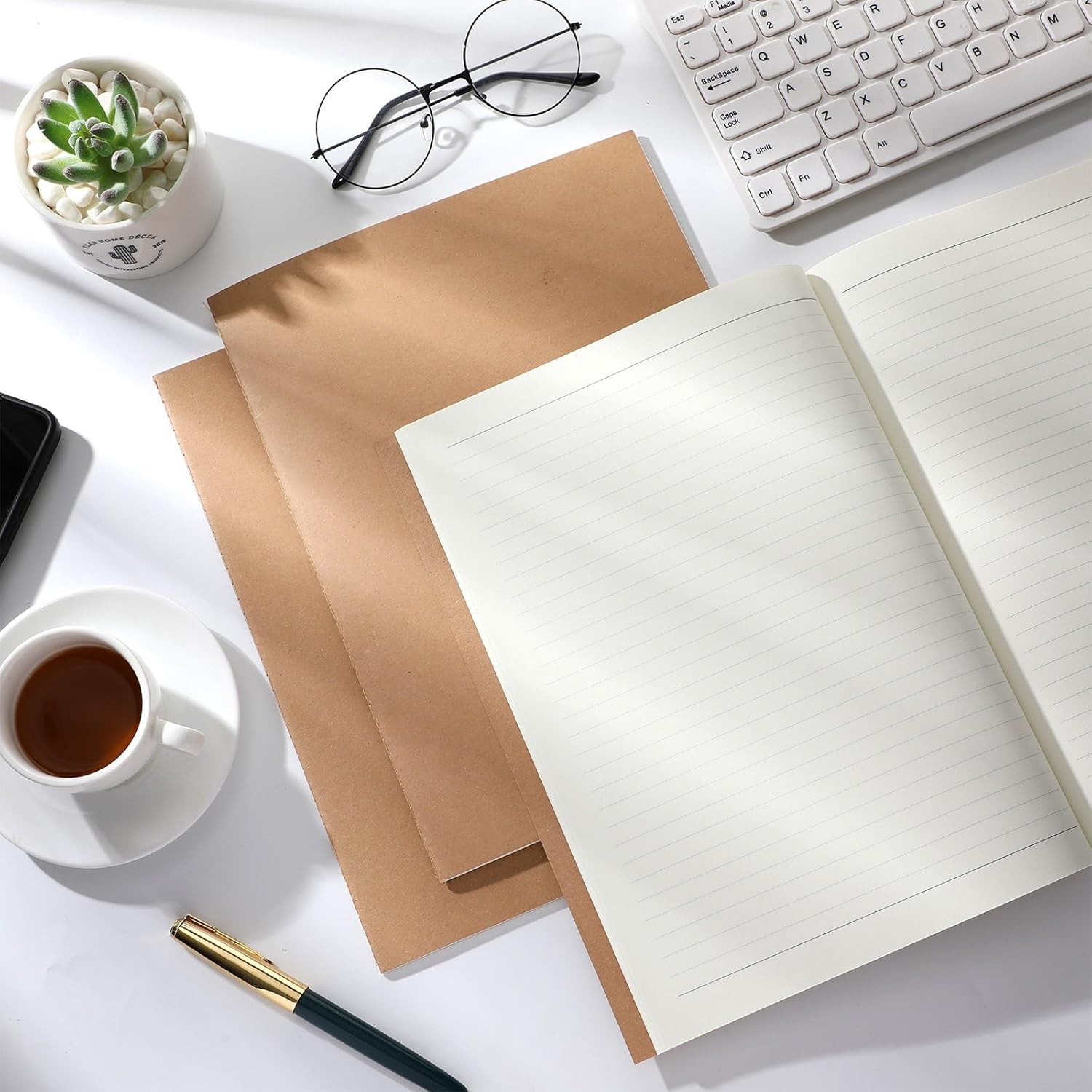 Lincia 24 Pack Large Kraft Notebooks Bulk, 8.5 x 11 Inch College Ruled A4 Subject Diary Journals Notebooks for Office Notes Writing Supplies, 60 Pages