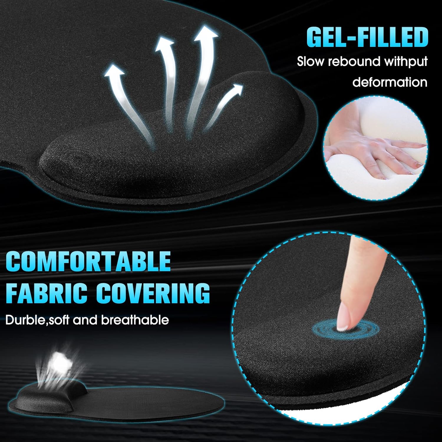 - Ergonomic Mouse Pad: our mouse pads are designed with memory foam filled pad and ergonomic wrist shaped design, which will offer ideal comfort and support to the wrist, relieve fatigue and pain, helping avoid carpal tunnel syndrome