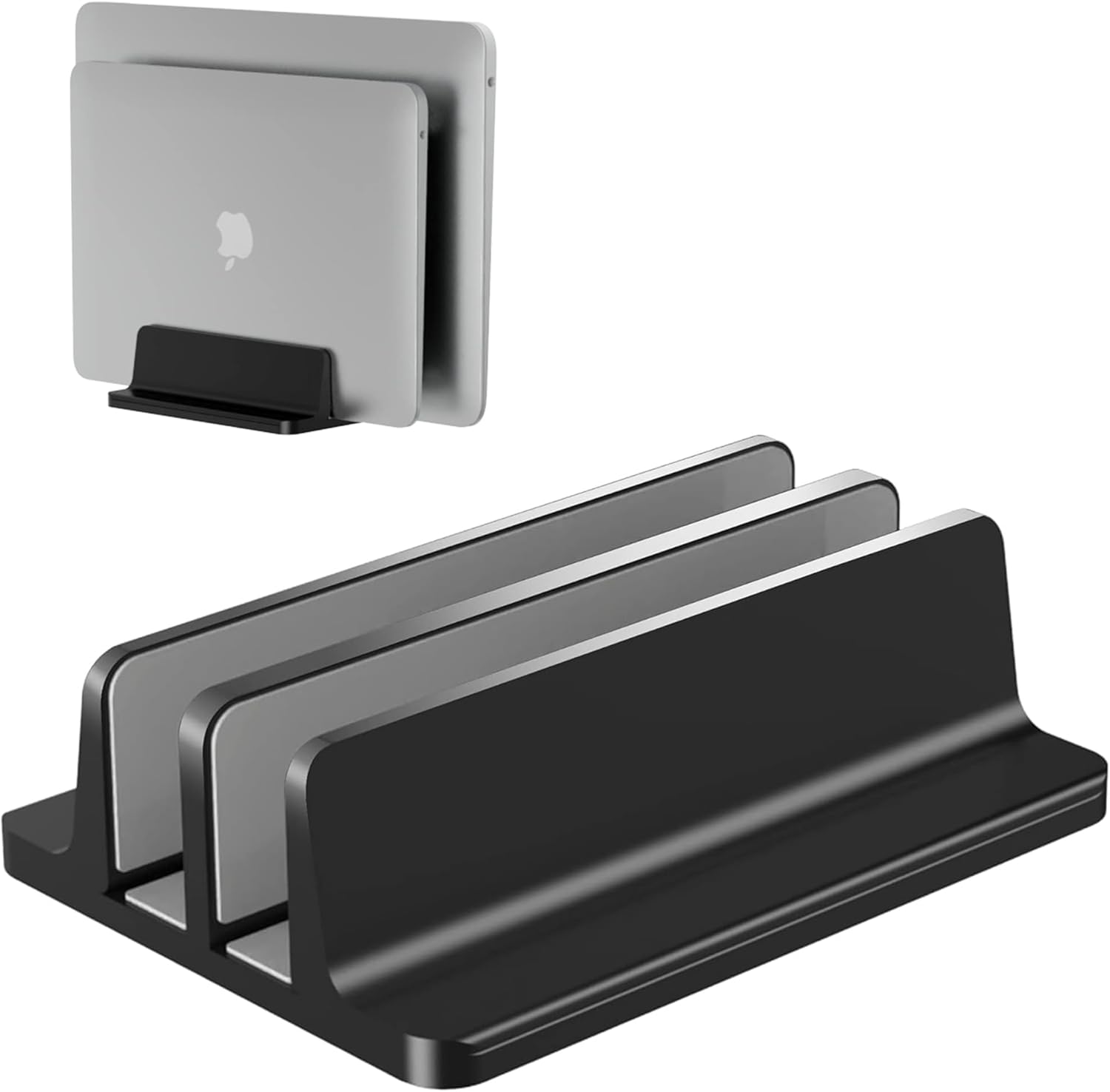 Vertical Laptop Stand, Adjustable 2 Slot Aluminum Desktop Holde(Up to 17.3 inch), Fits All MacBook/Microsoft Surface/HP/Dell/ChromeBook/iPad and Gaming Laptops (Black)