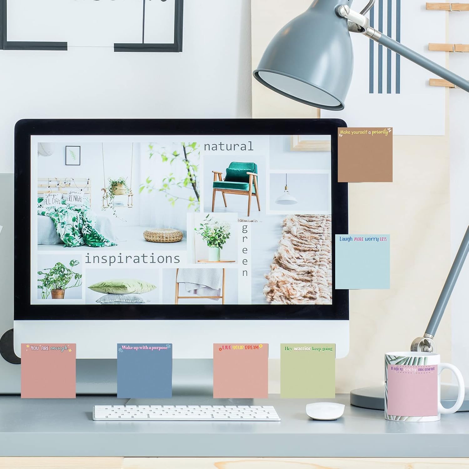 - Package Includes: you will receive 12 packs of inspirational sticky notes in various colors and printed with 12 motivational sentences, 50 piece for each pack,600 sheet in total, the size of each self sticky note is about 3 x 3 inches/ 7.6 x 7.6 cm; Sufficient quantity and various designs can meet your daily use and replacements, and you can share them with your friends and colleagues