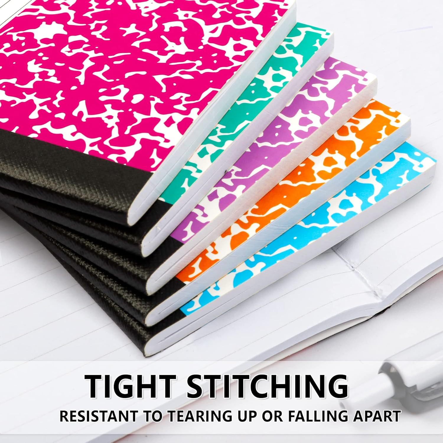 • Feela Mini Composition Notebooks include 70 pack 5 pastel colors marble cover pocket size cute composition notebooks.14 duplicates for each color. Each one measures 4.5 x 3.25 inches, which is perfect to carry in pockets and easily held in hand.