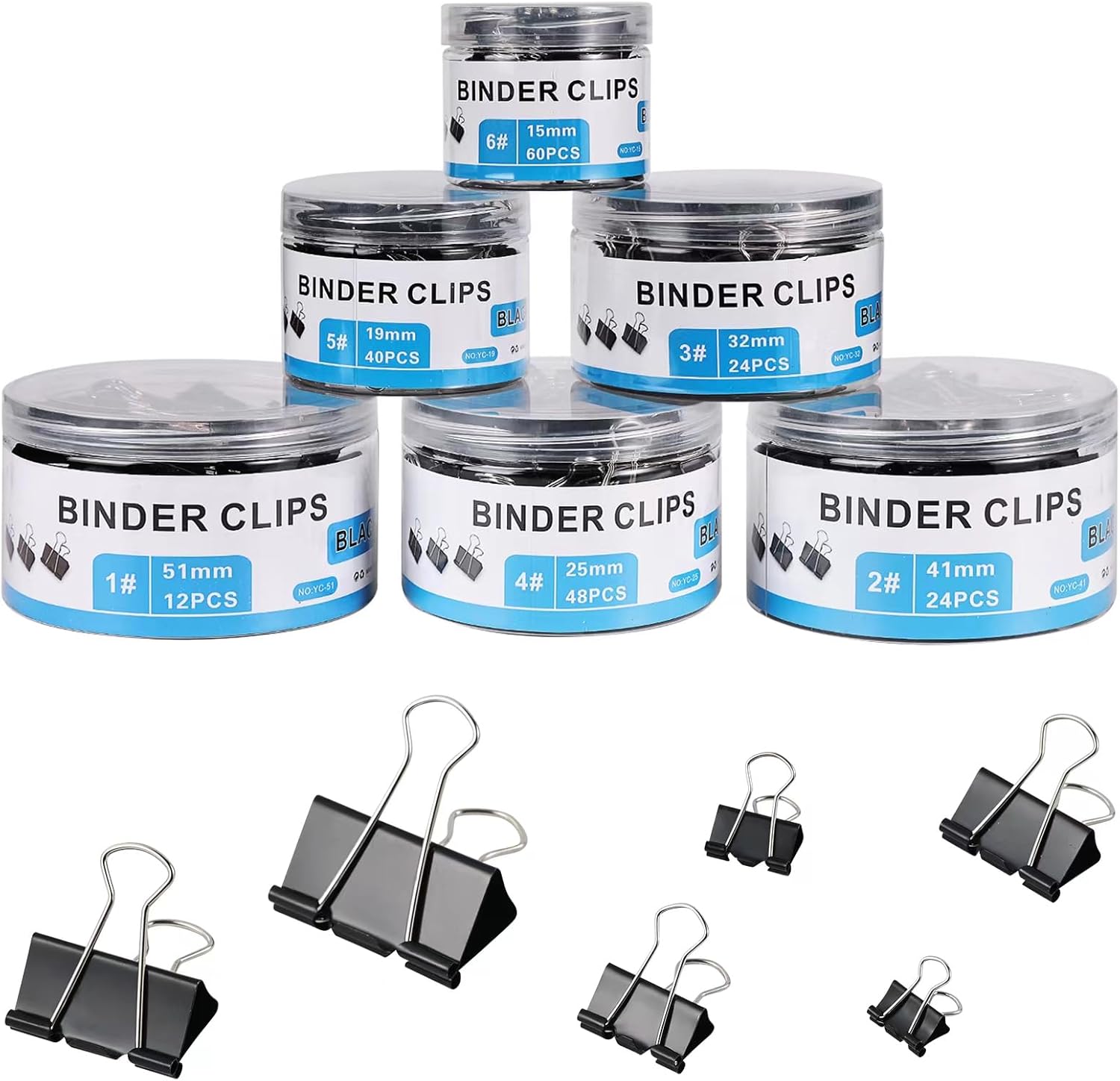 • WHAT YOU GET: 2 inch x 12 pcs, 1.6 inch x 24 pcs, 1.26 inch x 24 pcs, 0.98 inch x 48 pcs, 0.75 inch x 40 pcs, 0.6 inch x 60 pcs, assorted size total 208 pcs binder clips kit can meet your different using needs. You will also get a 100% satisfaction guarantee and after-sales service. Any questions about the product or packaging quality, please contact us for a satisfactory reply.