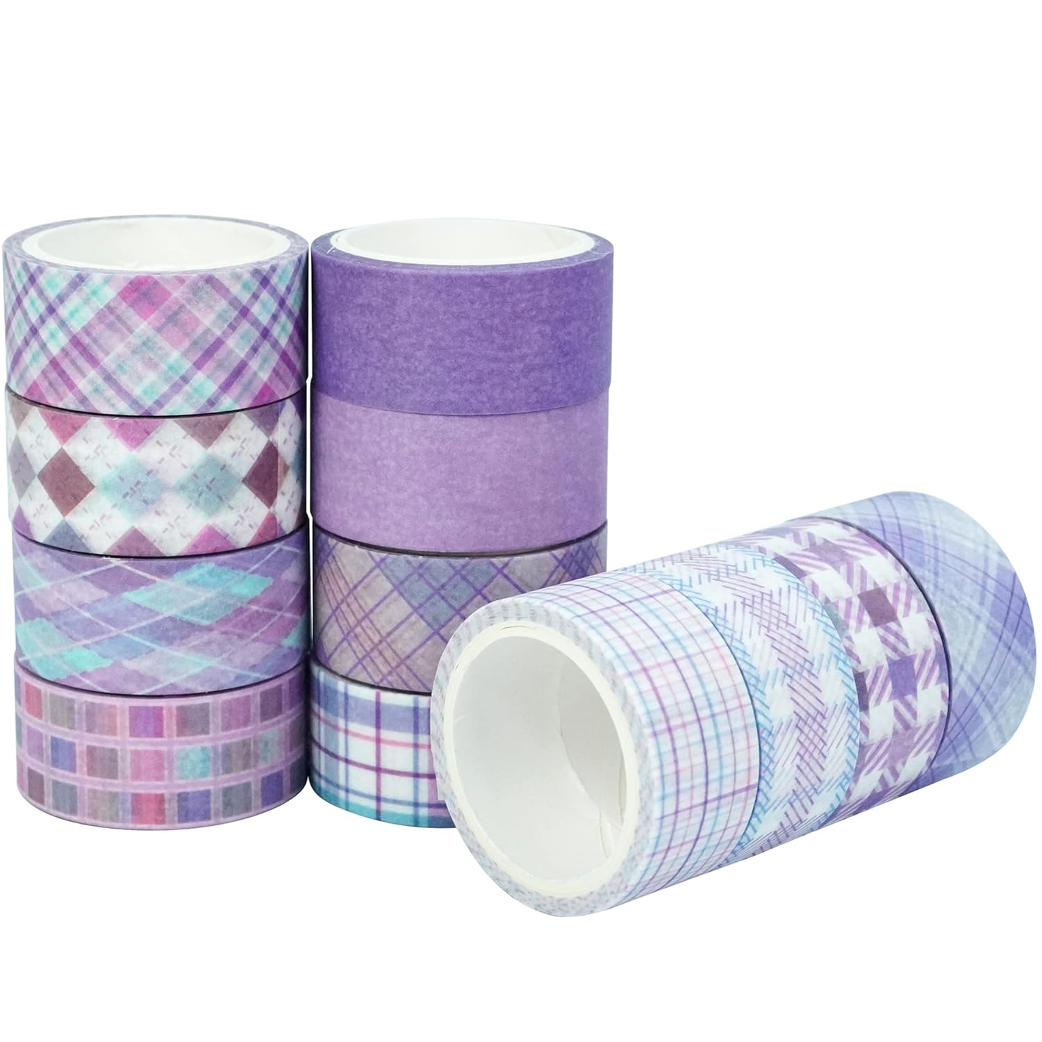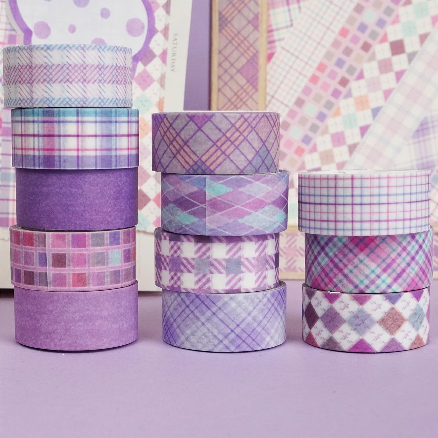 YUBX Basic Grid Washi Tape Set 12 Rolls Plaid Decorative Masking Tapes for Arts, DIY Crafts, Journals, Planners, Scrapbook, Wrapping (Purple)