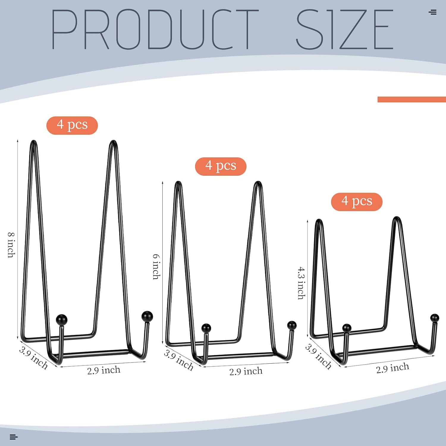 - You're Provided: the package comes with 12 pieces of picture holders for tables in 3 sizes, respectively 4.3 inches, 6 inches, 8 inches, fit most item from 5 inches to 11 inches in height or diameter, which can organize your items in order