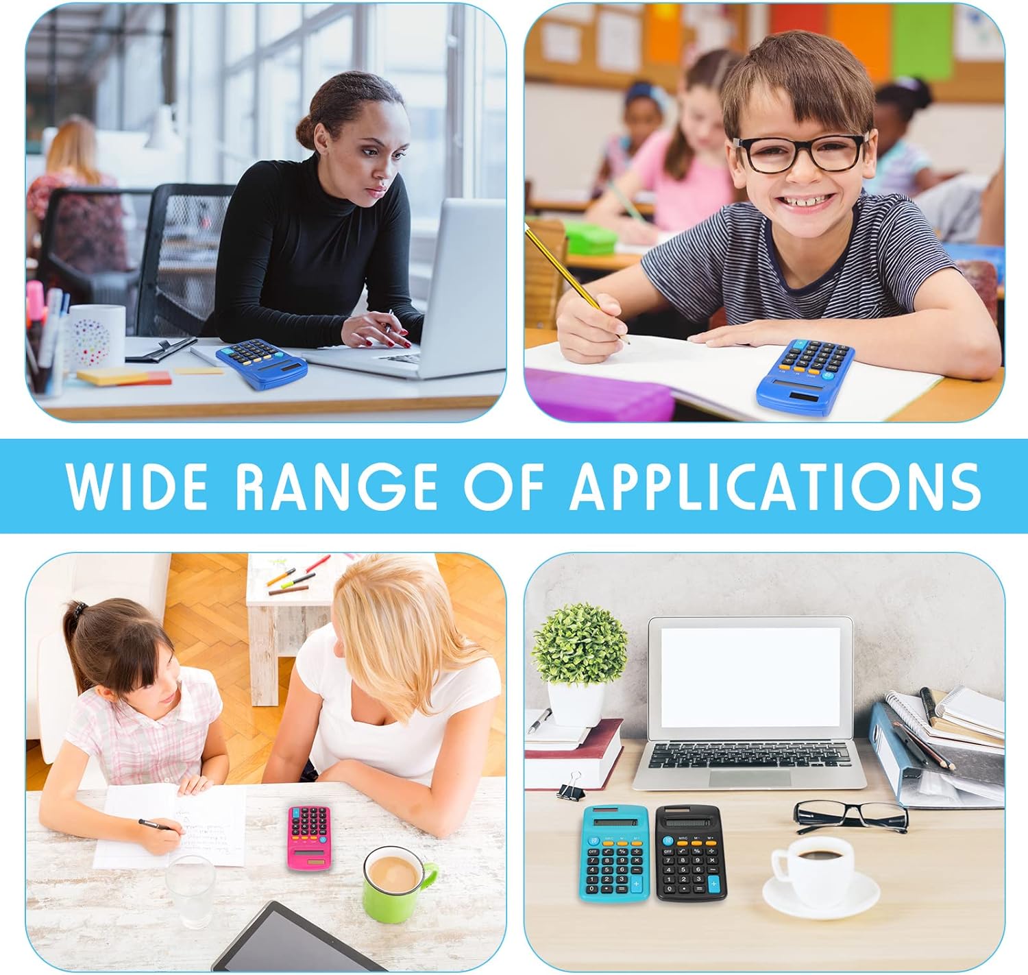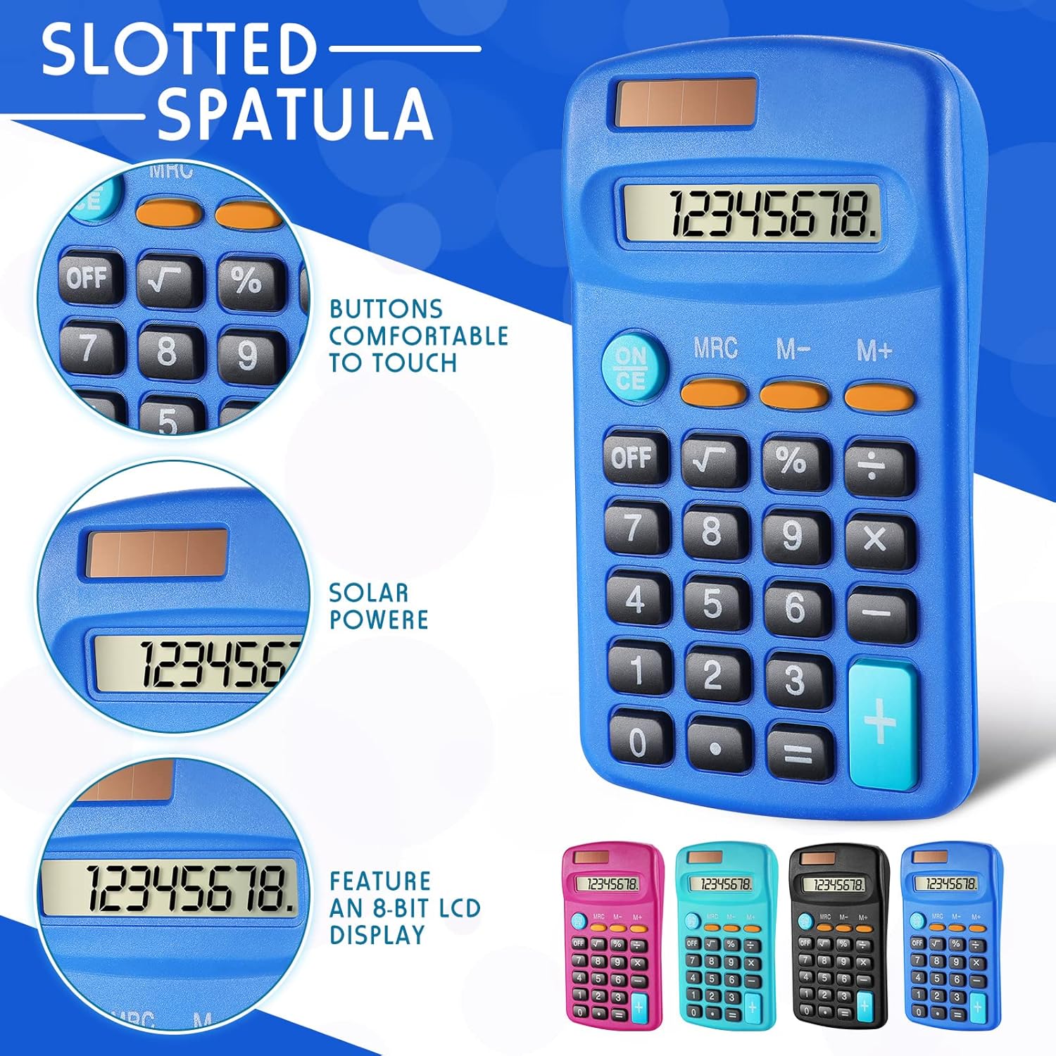 - Easy to Carry: these 8 digit display calculators are about 4.52 x 2.56 x 0.79 inches in size; Because of their small size, they can be put in the bag at any time; You can also put them in your pocket for easy carrying, which can bring you convenience