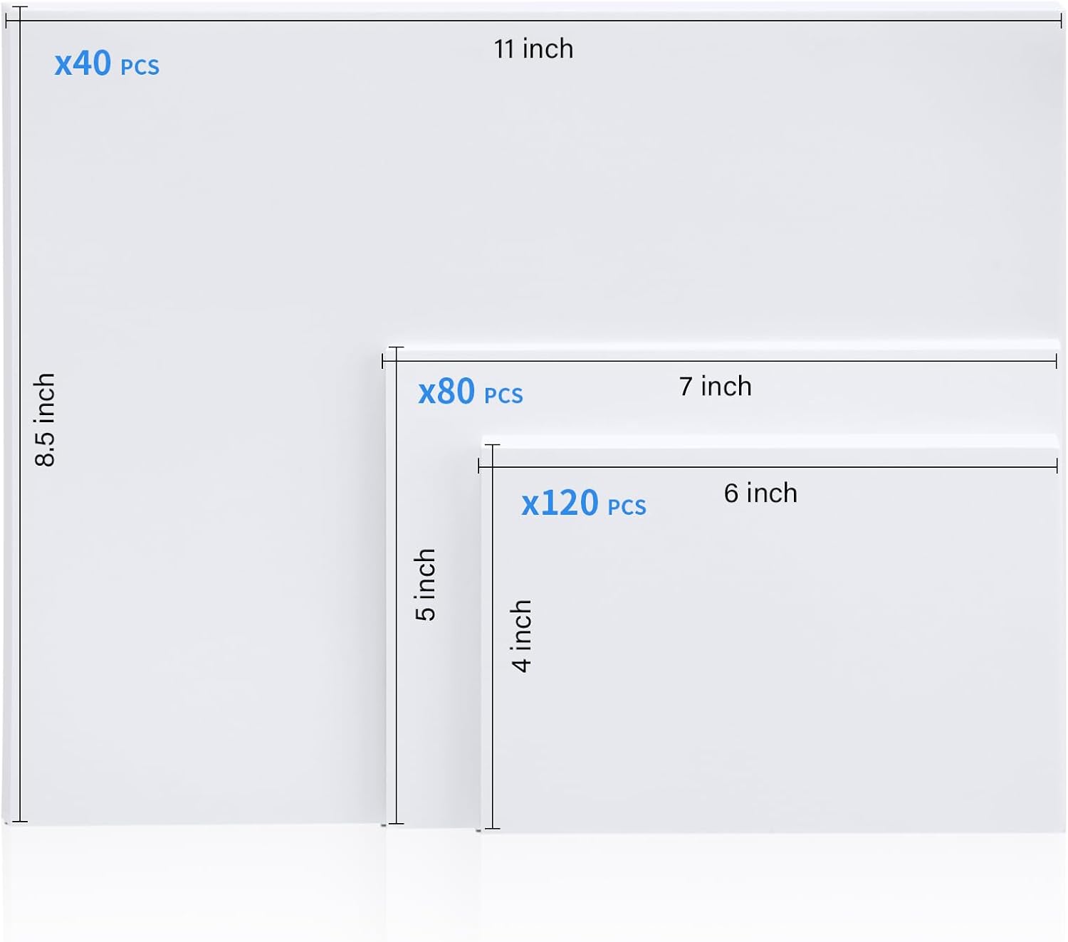 - 3 Different sizes: these smooth photo paper have 3 different sizes, 120 sheets 4 x 6 inch, 80 sheets 5 x 7 inch and 40 sheets 8.5 x 11 inch; These commonly applied sizes combinations meet different requirements