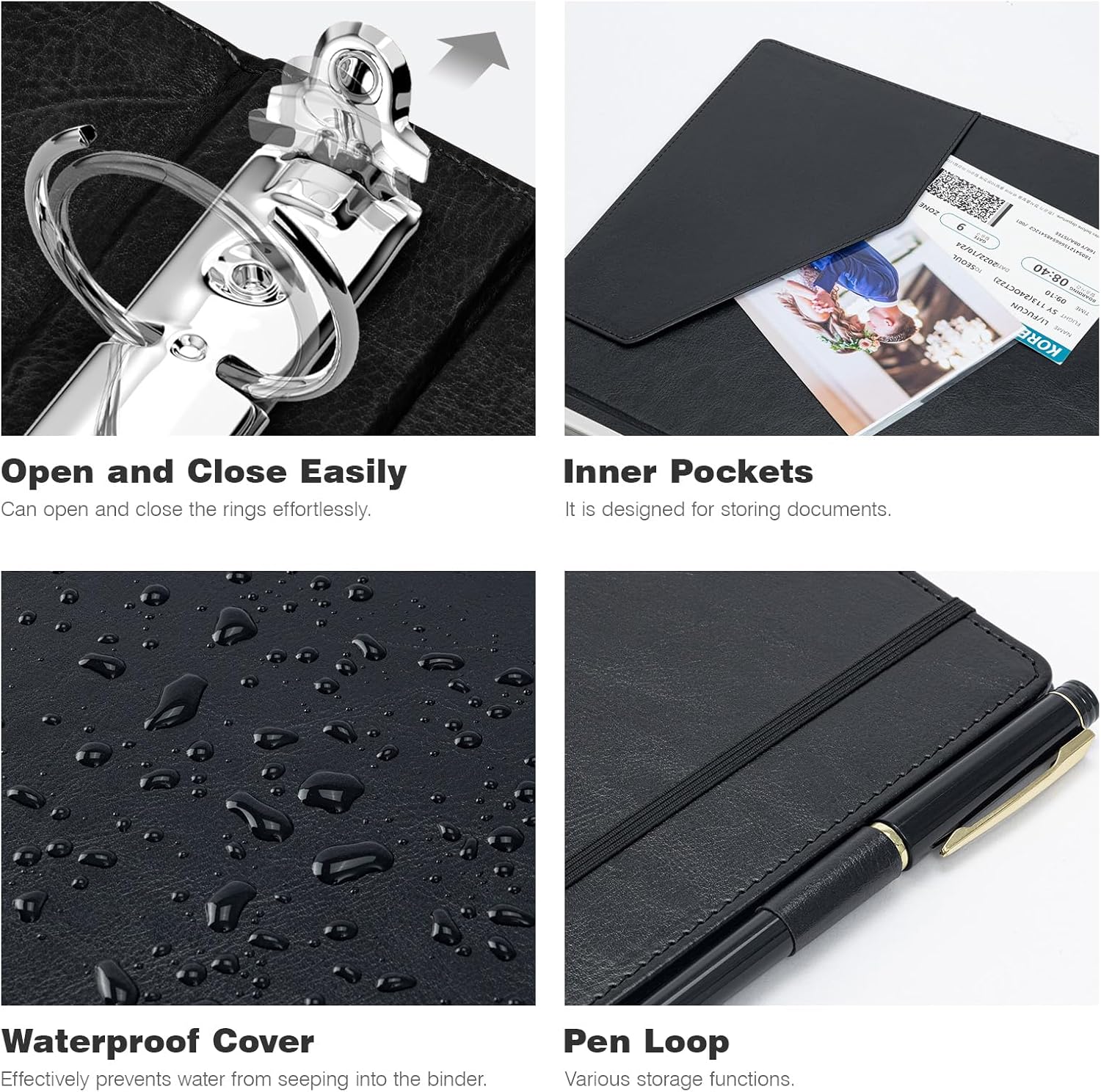 - 【HIGH QUALITY DETAILS】Elastic pen loop, keep your ink pens safe. Elastic closure straps securely close to prevent contents from being damaged during travel. Rounded corners are not only aesthetically pleasing, but also protective. Comes with a detachable spine spacer for quick and efficient access to binders.