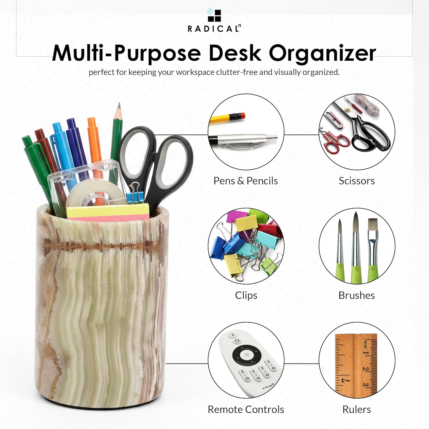 Radicaln Marble Pen Holder For Desk 4" Inches Green Onyx Handmade Stationary Holder For Office Supplies, Ideal Pencil Holders & Desk Organizer, Use for Makeup Accessories