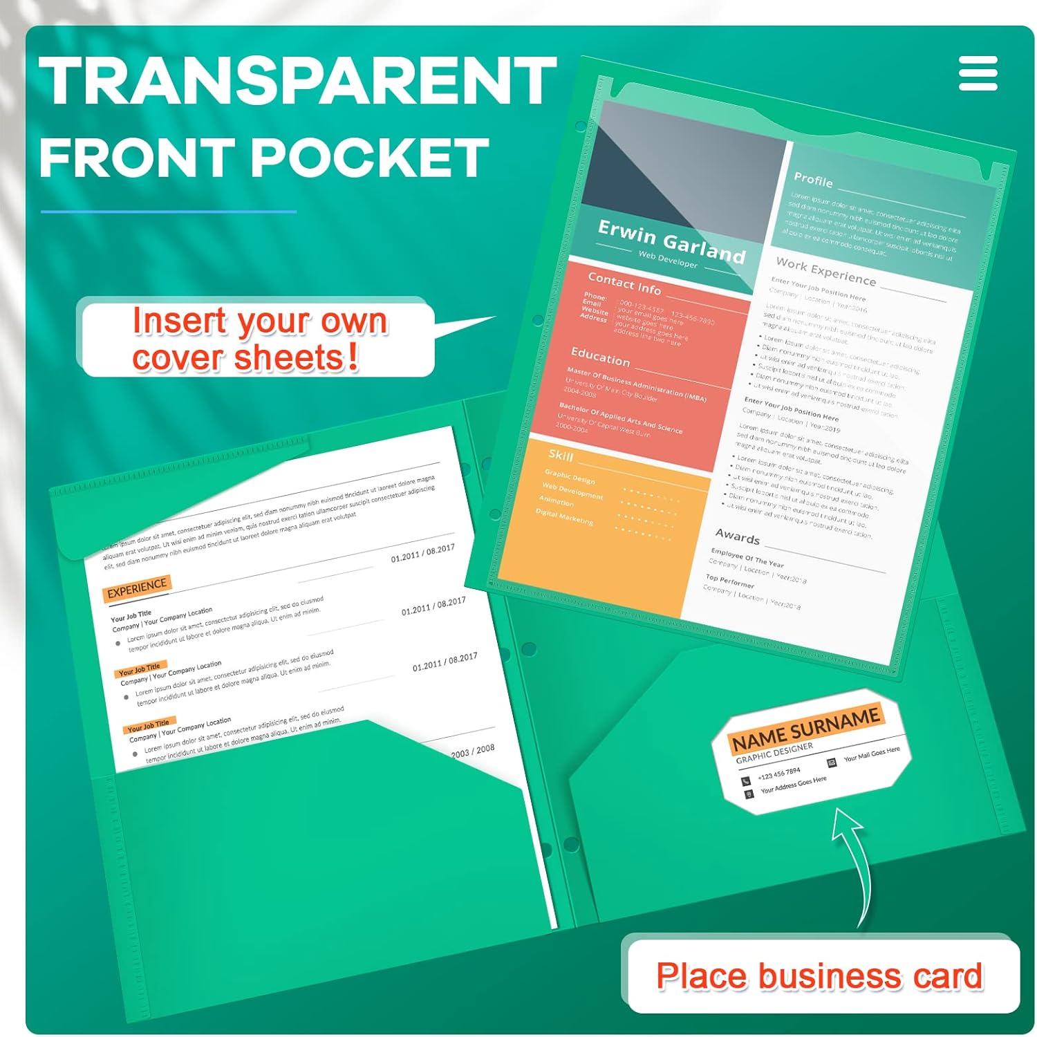 - Easy Organization: each plastic pocket folder features with 3 holes in one side, which enables you to put it into a standard 3 ring binder to organize loose documents, and clear front pocket of each folder help to store other items, giving you a comfortable using experience