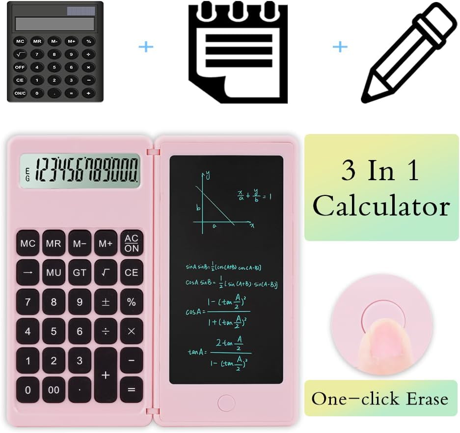 - Lightweight and Portable:This is a lightweight calculator with writing tablet,foldable design, weighs only 4 oz.It is so compact that you can carry it in your pocket,can be quickly removed and used immediately when needed,convenient for taking notes on phone calls, quick notes, and meeting minutes .