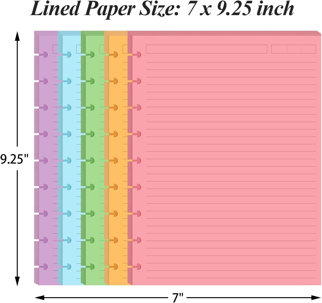 (2-Pack) 9-Disc Discbound 5 Colorful Line Paper Pre-punched Happy Planners Inserts, 200Sheets/400Pages Classic Size Line Loose-Leaf Paper, Per Color 40 Sheets, 7" x 9.25"