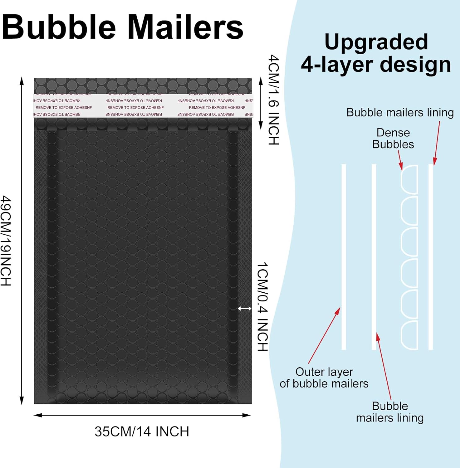 - Sufficient to Meet Your Needs: you will get 30 pieces of black bubble mailers, with size in approx. 14 x 19 inches/ 35 x 49 cm, and 1.57 inches/ 4 cm expansion; Sufficient quantity will meet your using needs, and you can share them with your family