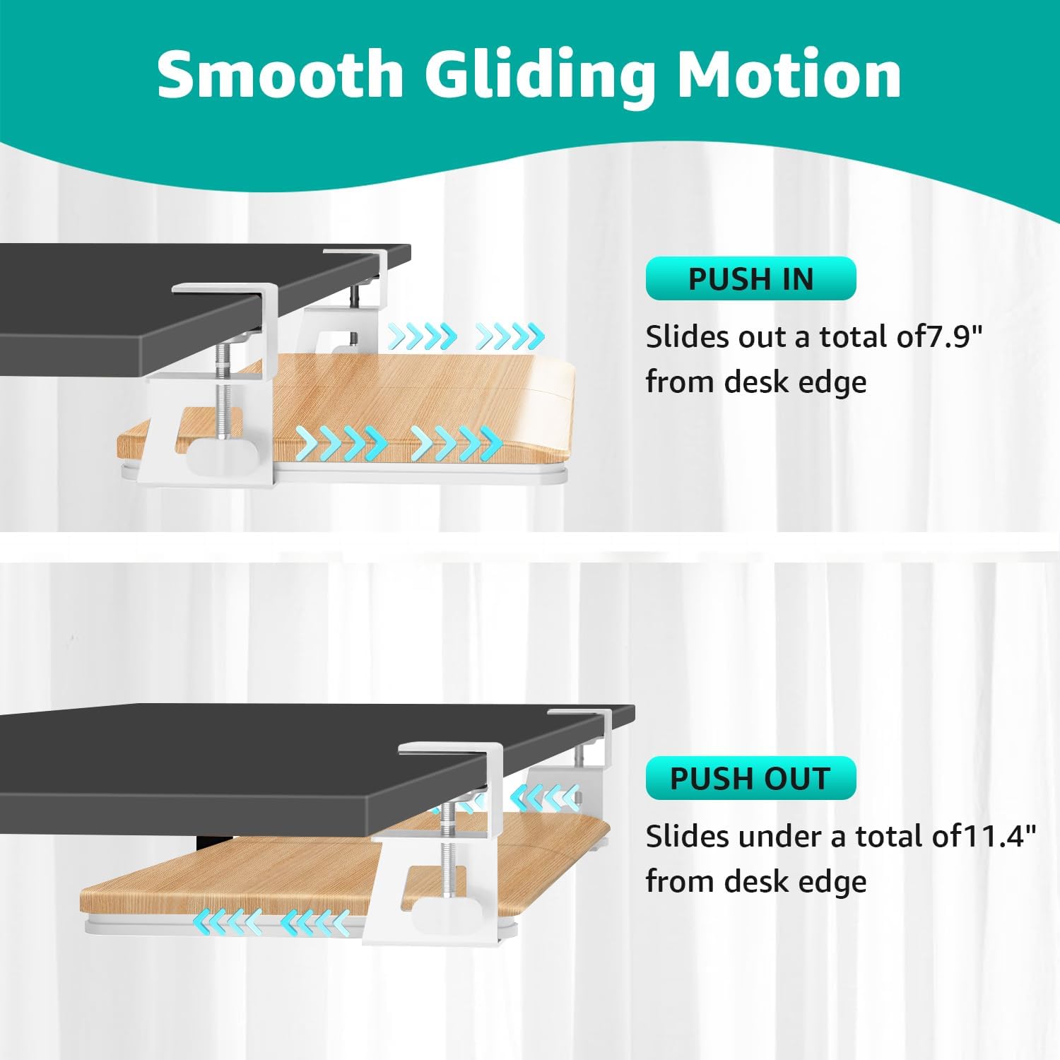 • [Sliding Tray] - The retractable, smooth sliding rail design allows the desk drawer to slide smoothly back and forth. It encourages you to keep your arms and wrists in a neutral position and helps prevent injuries caused by poor posture. Simply slide the tray under the desk when not in use and remove it quickly when more space is needed.