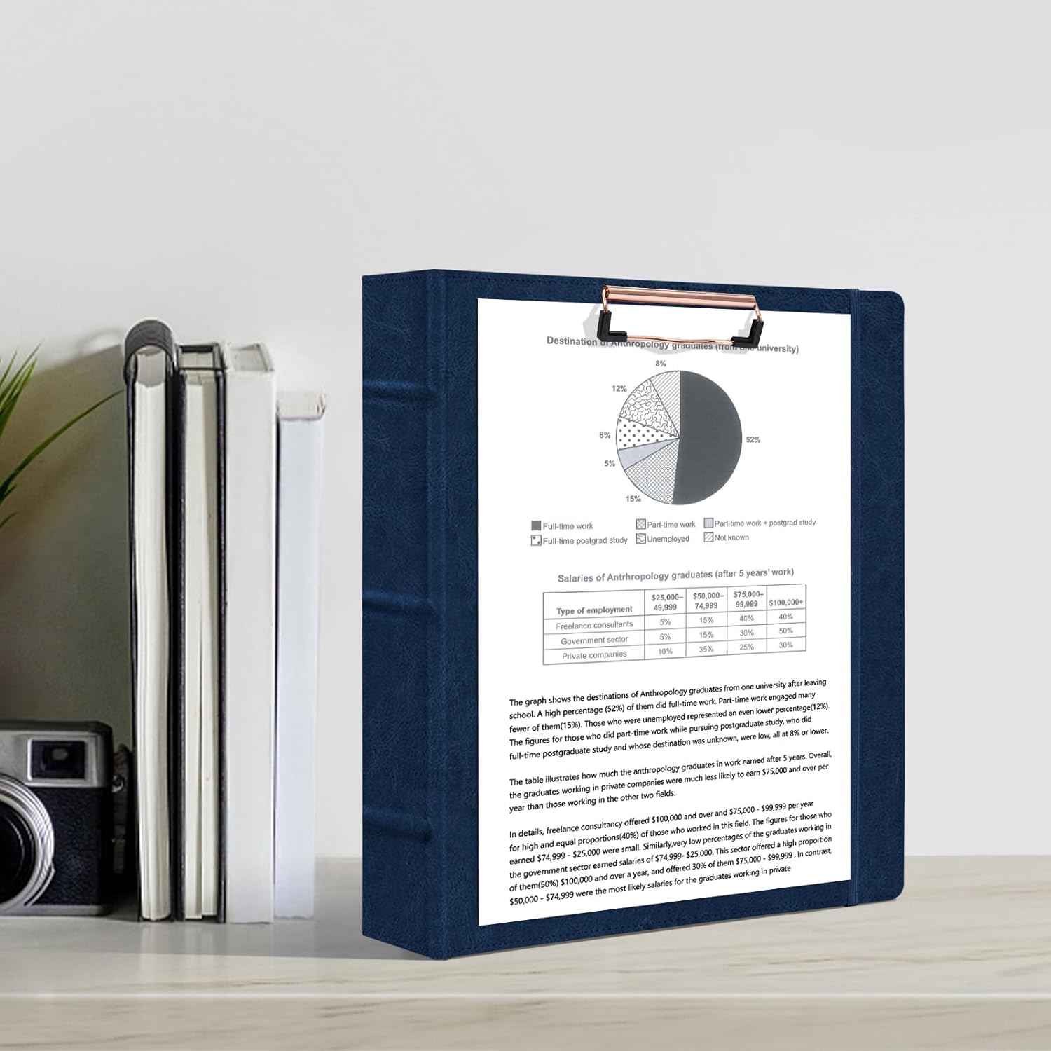 Ospelelf 3 Ring Binder With Clipboard - 2 Inch Vintage Leather Organizer for Letter Size (8.5" x 11"), Professional Dividers With 5 Tabs, Dark Blue
