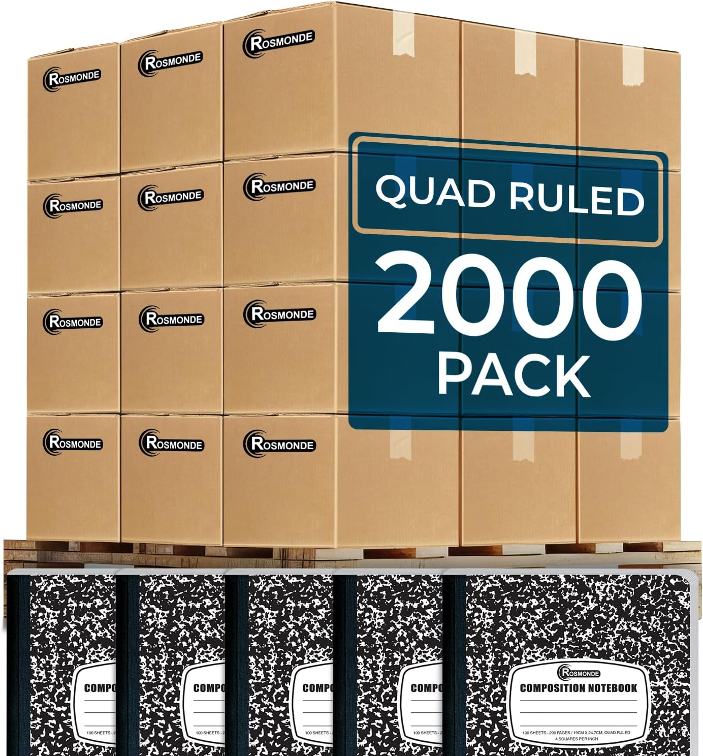 Rosmonde 2000 Pack (Pallet) Composition Notebooks Bulk, Quad Ruled, Full Pallet of Composition Notebooks, 200 Pages (100 Sheets), 9-3/4 x 7-1/2, Bulk Notebooks for School & College, 4-7 Days Transit