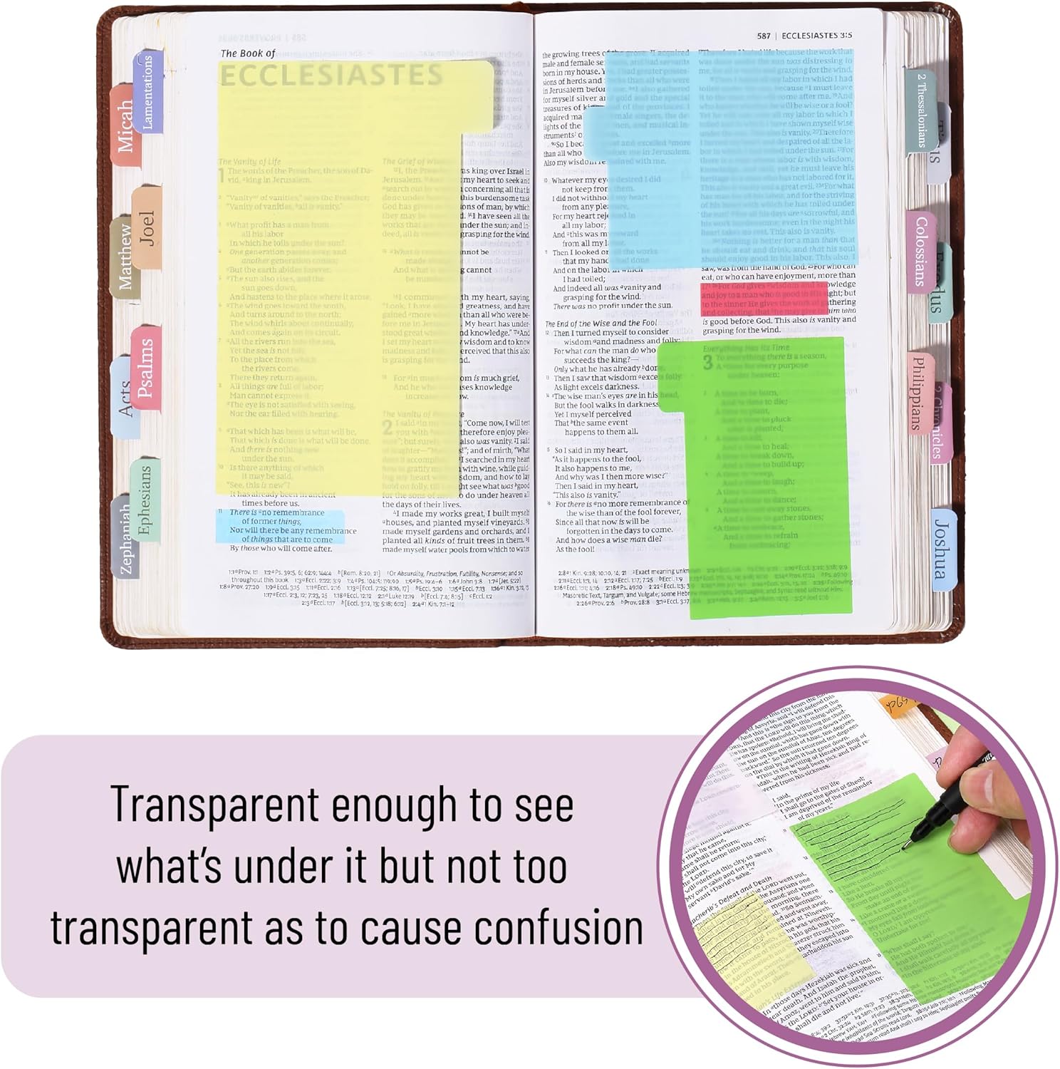 • Made from high-quality transparent and pastel-colored materials, these sticky notes allow for easy highlighting and layering without completely covering underlying text.