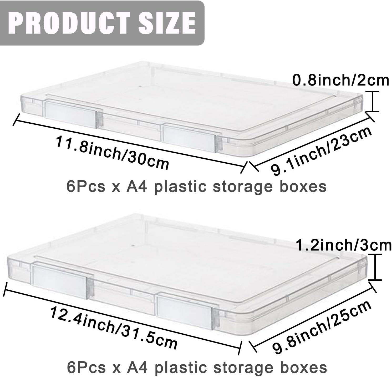 12 Pcs Clear A4 File Portable Project Case, Plastic Storage Box for 8.5" x 11" Letter Paper, Scrapbook Paper Storage Boxes Documents Magazines Holder